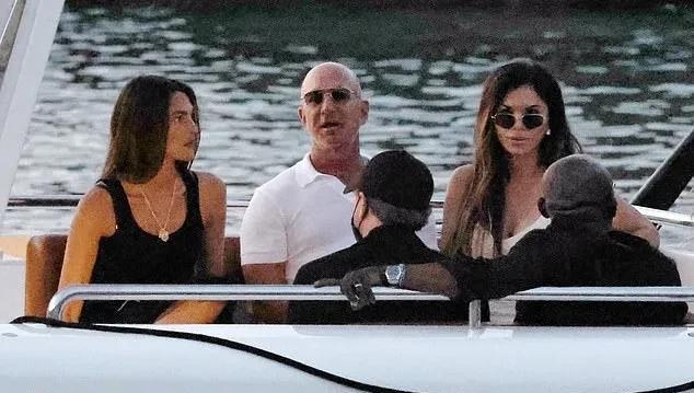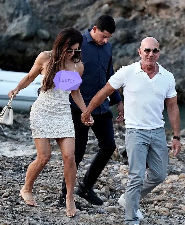 小李子和27岁女友手牵手,维多利亚·塞雷蒂穿了一套黑色裙装与莱昂纳多·迪卡普里奥十指相扣。 与此同时,劳伦·桑切斯身着露背吊带礼服配高跟鞋好有范儿,61岁的杰夫·贝索斯眉开眼笑。 他们四人在西班牙的伊比沙岛,3名保镖随行。