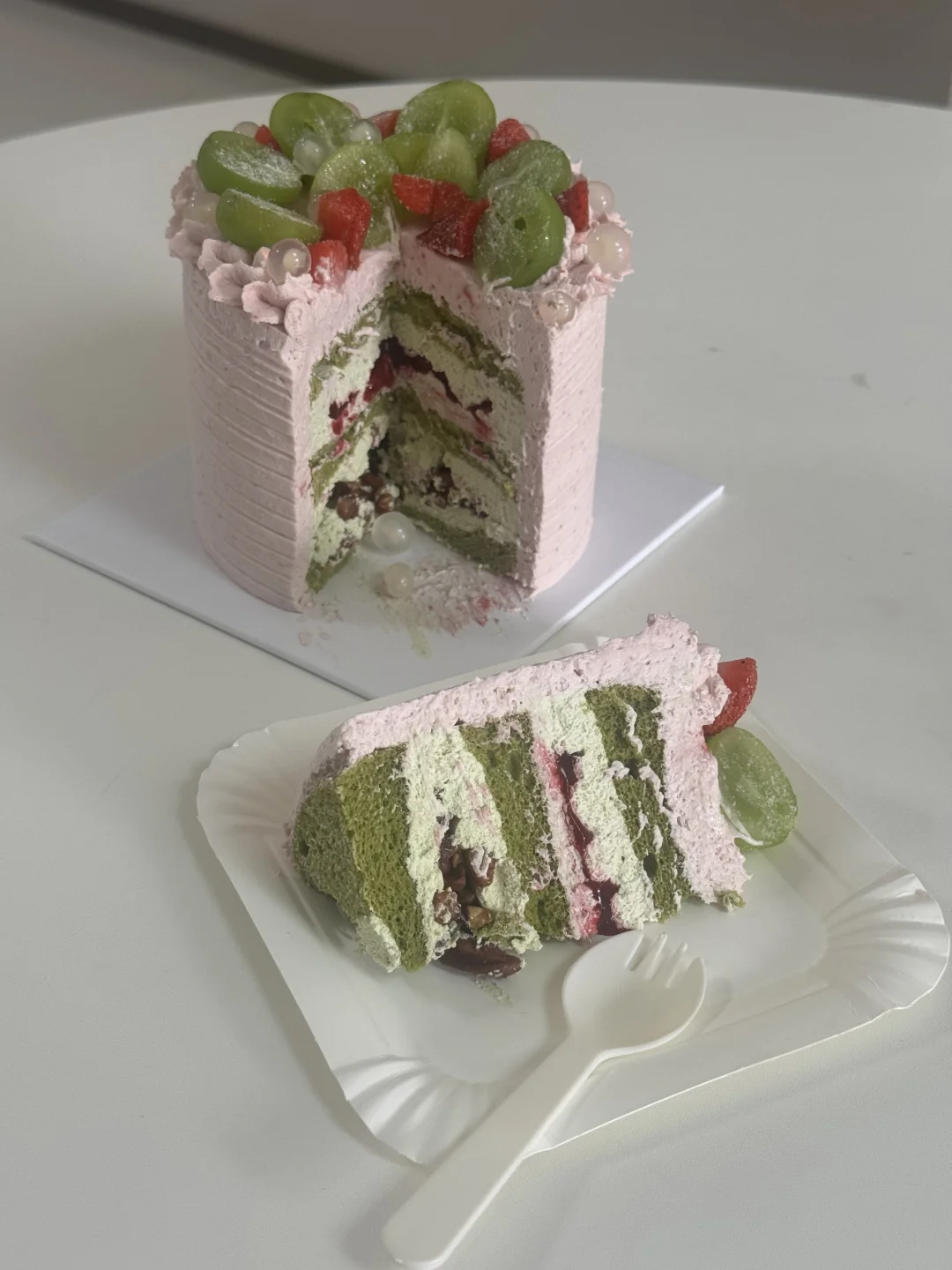 68r四寸龙井树莓抹茶戚风蛋糕👍🏻