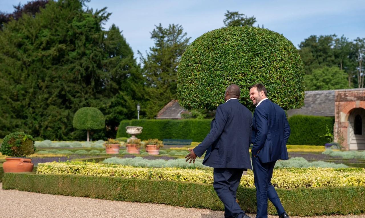 万斯在科茨沃尔德家庭度假,他周五与英国外交发展大臣戴维·拉米在肯特郡的乡间别墅钓