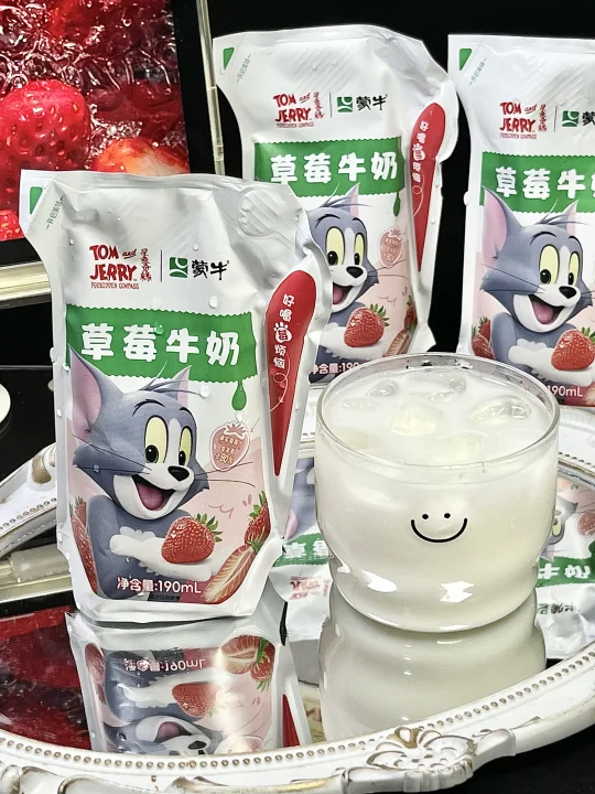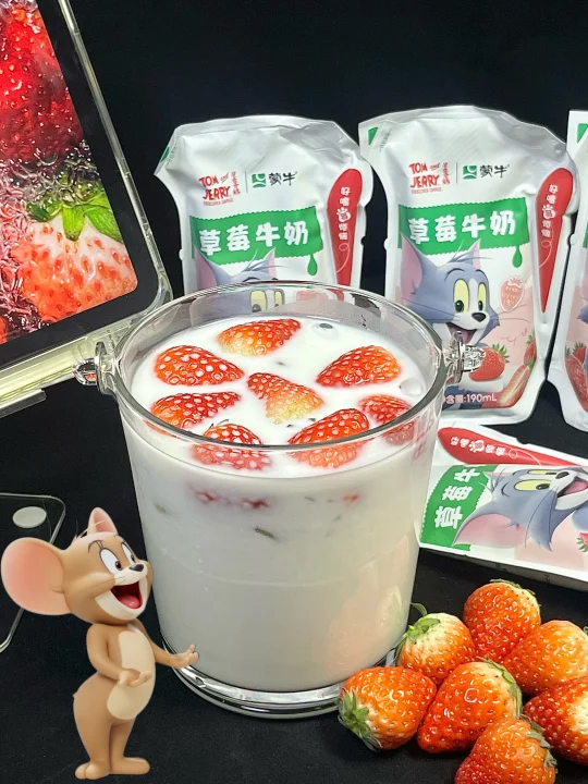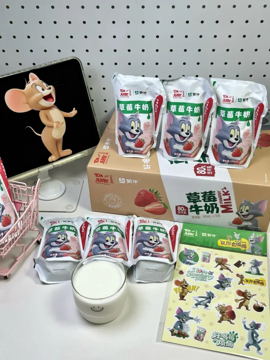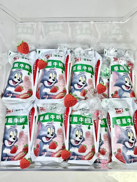 😭该说不说,蒙牛这波与猫和老鼠联名的牛奶真的杀疯了! 重点吹爆这个草莓味!!! 答应我一定要冲好吗!! 生牛乳的醇香巨浓郁,混着真实草莓果汁,一口下去丝滑无比!清爽不腻,甜度刚刚好,喝完嘴里都是香香的草莓味, 我一个人能炫三袋! 包装上还是捧着鲜艳草莓冲你笑的Tom,可爱到想天天揣兜里!我直接怒囤一整箱,足足16包够喝到爽!谁还没喝到我会伤心的OK?!奶娃子速冲!✈️