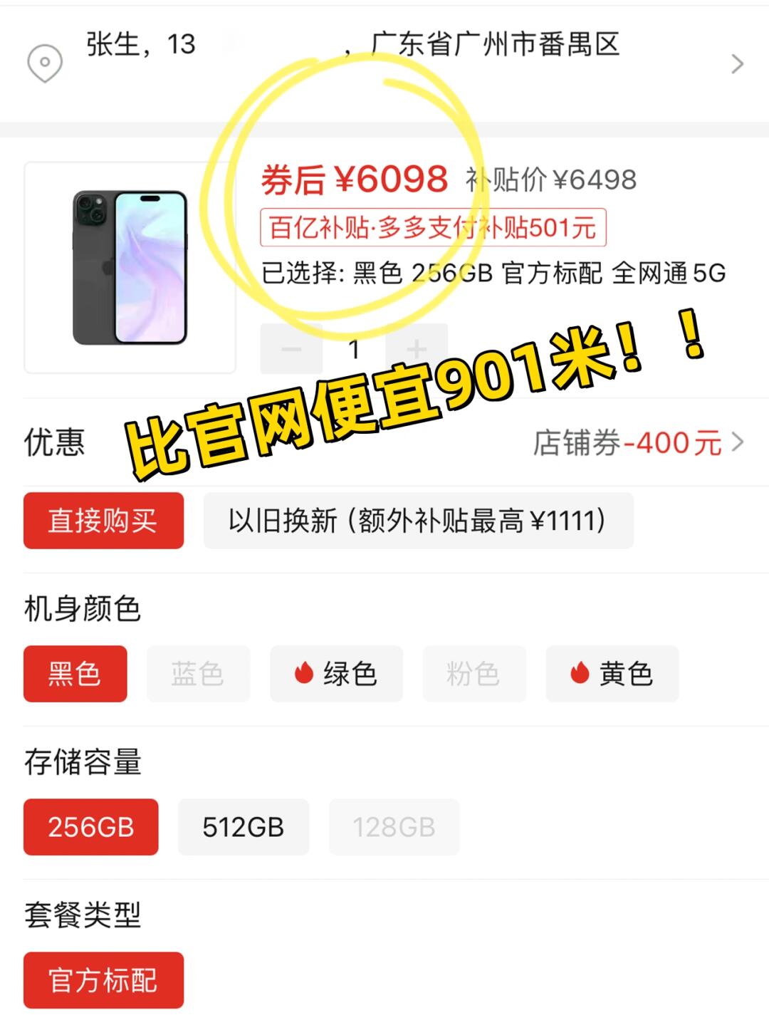 [赞R]PDD百亿补贴,iphone15 pro至高直降2100+,也太划算了吧!黑色iPhone 15 256g也比某平台便宜了900米,我白白损失900米[哭惹R][哭惹R]