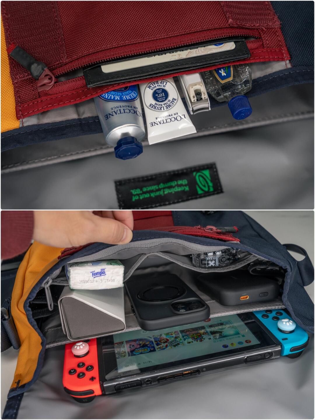 [飞吻R]钟爱斜挎包的我,又入了它家更大尺寸的邮差包。日常外出用到的手机📱、Switch🕹️、眼镜盒👓、充电宝、护手霜、唇膏等都能轻松装下。图一的物件都放进去,还有很多富余的空间。我在考虑要不要放一个泡枸杞的保温杯[偷笑R]