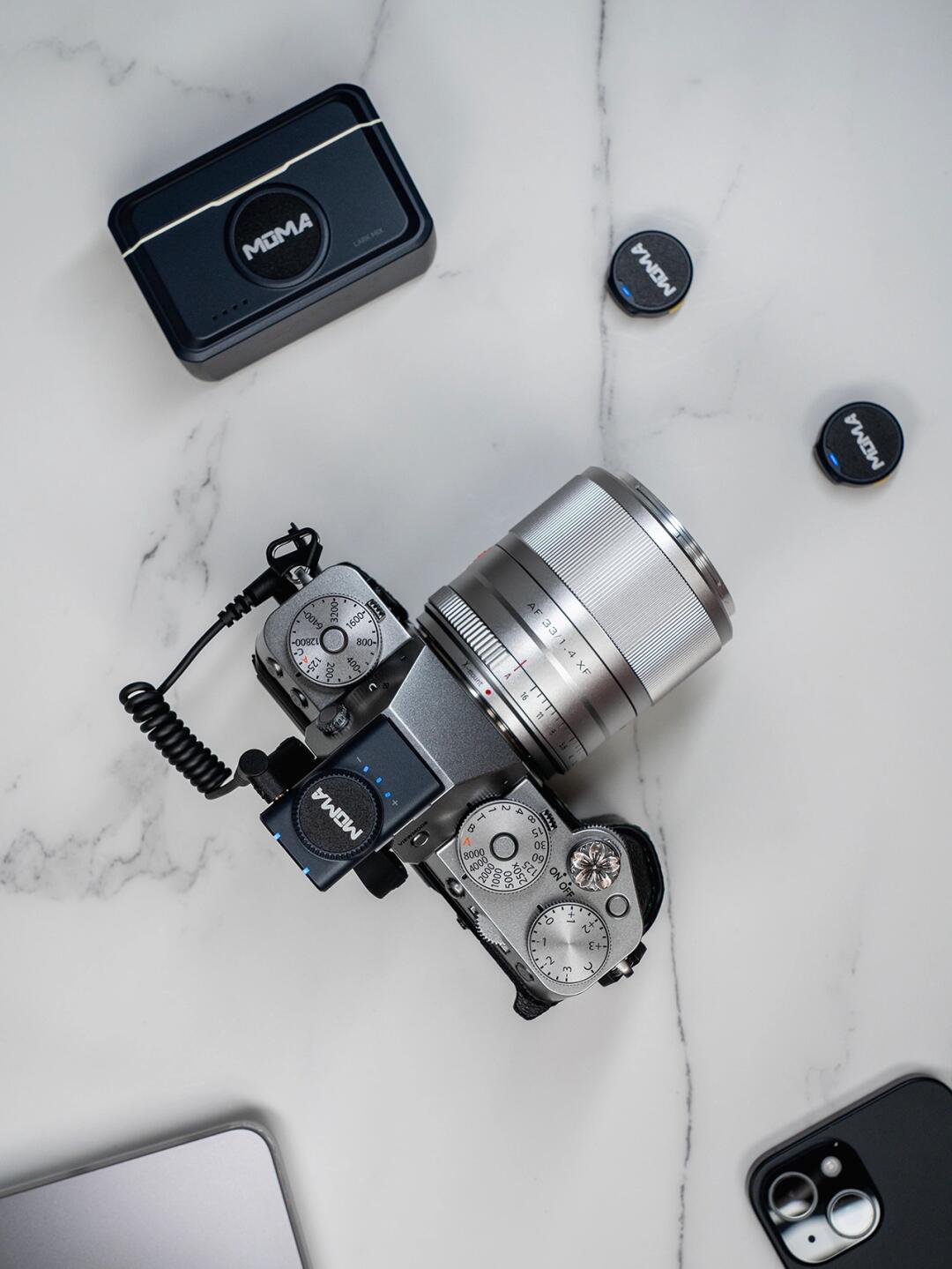 今天就来分享一下它的使用感受。它给我第一印象就是小巧,发射端几乎和一元硬币一样大,重量只有9g。它一改麦克风传统的方正设计,采用了圆润的纽扣造型,让人眼前一亮。搭配富士xt5使用,颜值很高。
