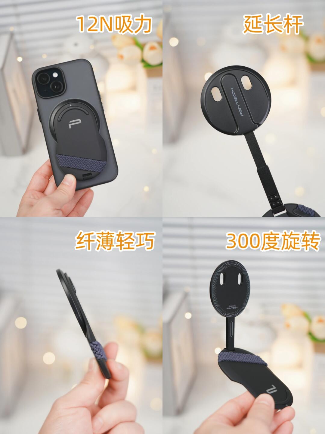 [太阳R]磁吸手机支架太实用了,吸在手机背面,不占地方。可以当桌面支架使用,横竖切换都很顺畅!弹力指环能解放大拇指,更方便手机自拍。这么小的体积,居然还自带延长杆,你敢相信吗?自拍和低角度跟拍都得心应手!