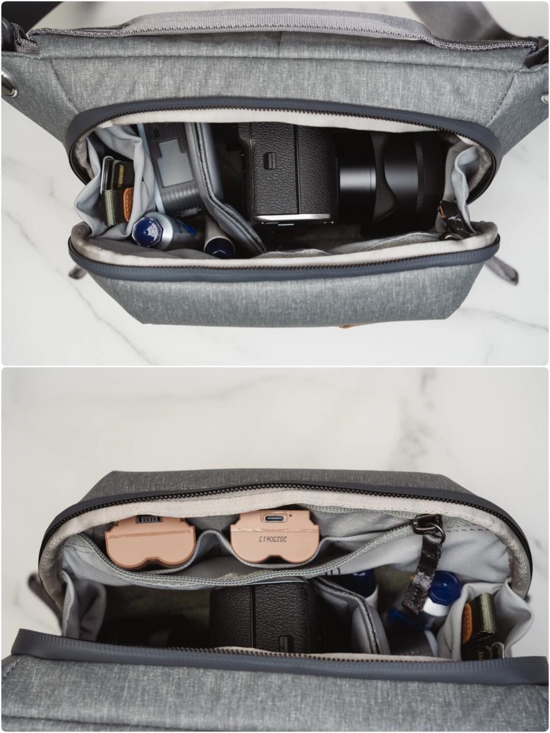 [拍立得R]相机包是3L的,别看他小,还挺能装。一机一镜还有富余,能再轻松放下一个小的补光灯。中间的隔板是可以随意调节的,适应不同的相机镜头组合。电池也有专门的口袋!