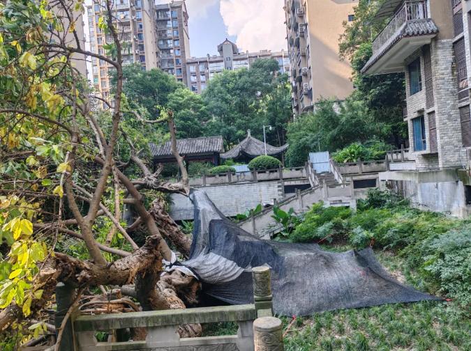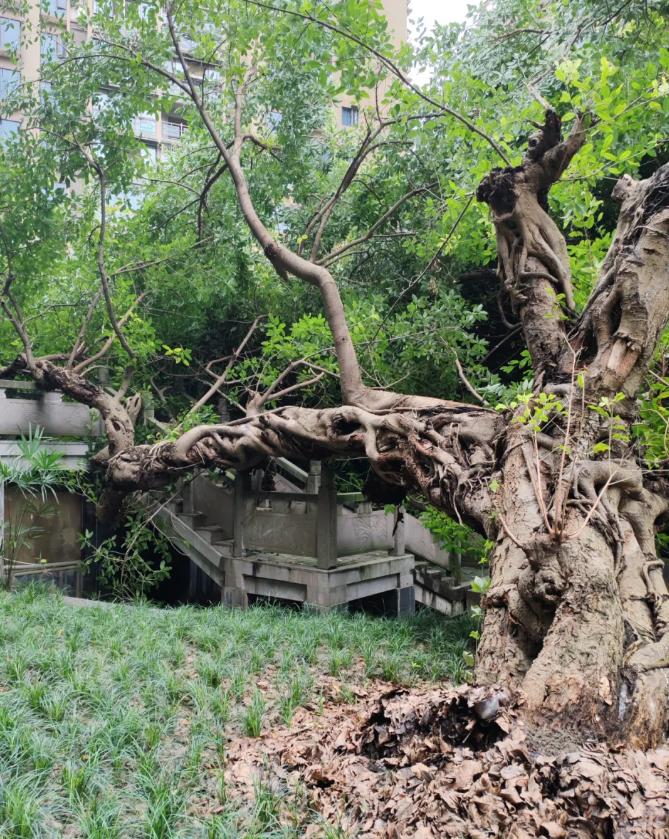 【痛心!眉山200岁黄葛树倒伏,古树究竟谁来保护?】近日,有网友反映他所住的眉州公馆小区内一株树龄200多年的黄葛树,在周一早上突然整株倒了下去至今(8月15日)已经第五天了,还是没见哪个部门来处理. 古树身份信息 这棵老树可是有“身份”的,树上挂的牌子写着(古树名木编号牌) 树名:黄葛树 树龄:200年 保护级别:三级 编号:007 编号单位:眉山市人民政府 据网友介绍:这棵黄葛树倒在眉州公馆小区负一层停车场外面的步行道上,树大概有十几米高,现在步行道已经无法正常通行。倒伏不仅导致部分树干断裂、根系裸露,还压坏了周边的休闲座椅和部分绿化带,万幸的是没有造成人员伤亡。 倒伏至今已经第五天了,听小区物业说因为它是古树名木,不敢擅自处置,只在周围设了围挡防止危险,大家都不清楚物业是否已上报相关部门。 不过值得欣慰的是,截至目前,现场能看到一些保护措施:裸露的根部被泥土覆盖,部分枝干用棉絮包裹保湿,包裹部位还搭了遮阳网,另外还有树木吊针输液、清除断枝做病菌防护、浇定根水、暂停施肥等操作。 古树存亡谁负责? 根据古树名木保护条例,像这种几百年的挂牌古树倒了,到底该由谁来负责专业救治?该由哪个部门来管理呢?现在业主们最关心的是,这棵古黄葛树什么时候能重新站立起来?还能不能立起来?之后还能恢复生机吗?现在大家都不知道该找哪个部门来推进这些事,希望能有明确的部门对接,让这株百年古树得到妥善处置。(图文来源:网络)