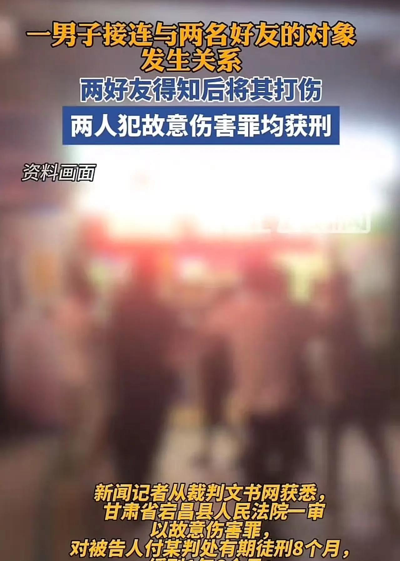 “防火防盗防兄弟!”甘肃,男子接连和两名兄弟的对象发生关系,2个兄弟知道后气不过打了男子一顿,结果2个兄弟被判故意伤害罪获刑!网友:他搞了你老婆,你去打他,你还得坐牢。搞人家老婆的,不受法律和道德制裁? (来源:红星新闻) 2022年左右,小赵和小付认识后称兄道弟,还把自己的好兄弟小王介绍给小付,三人整天厮混在一起。 后来,小赵觉得小付的老婆很有韵味,暗中勾搭她。2024年11月,小赵勾搭成功,给小付戴了绿帽。 得逞后,小赵觉得很刺激,忍不住把这事情告诉小王炫耀。 小王认识小赵久一点,虽然觉得小赵做的不厚道,但还是替他隐瞒了! 可没想到小赵一发不可收拾,觉得玩兄弟的老婆很过瘾,又勾搭了小王的女友,在12月29日和她发生了性关系。 但纸包不住火,小王的女友觉得亏欠小王,向小王坦白了这件事情。 小王怒不可遏,把小王之前干的事情也告诉了小付。两人一起找小赵算账。 但小赵否认,敢做不敢当!小王和小付实在憋不下这口恶气,从当时所驾驶车辆后备厢拿出一根棒球棍对小赵进行持续殴打! 后来小赵伤情鉴定为轻伤一级。一审法院认为,被告人付某、王某故意伤害被害人赵某身体并致其轻伤一级,构成故意伤害罪。 而小赵拒不接受赔偿且对被告人小王不予谅解,遂不适用缓刑。 最终,法院一审判决被告人付某犯故意伤害罪,判处有期徒刑8个月,缓刑1年6个月;被告人王某犯故意伤害罪,判处有期徒刑1年2个月。 此事引发了热议,有网友说,这下好了,两男去服刑了,两女轮流侍候一男。人世间的事就是这样荒唐。人若失去道德总要付出代价。 也有网友说,这种判决,可以畅想一下,这俩被放出来以后会发生什么?看似公正的处罚却缺少了社会公德的良知。 还有网友说,老婆和女友被色狼朋友睡了,二男人想快意恩仇,给色狼施以棍棒惩罚,没成想自己却进了班房。而色狼除了挨了二男人一顿打,没受任何法律制裁!在古代小赵会怎么样? 朋友妻不可欺,小赵确实有错,但是小王和小付冲动了,不能自己私下暴力解决问题,否则按照现在的法律就是违法犯罪。 不过,好的法律应该是道德规范的升华:任何一个国家制定的法律都应遵重本国的公序良俗:决不能画虎类犬。 社会风气日下,像这样的案子应该以破坏他人合法婚姻案判处,在明知他人婚姻存续期还发生关系应该判处有罪,这样才能降低离婚率! 那么,你对此事怎么看呢?#头号创作者激励计划#