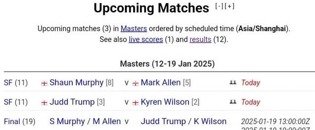 2011大师赛冠军丁俊晖日场遭小特五连鞭逆转出局,从未进过大师赛决赛的小布也未能实现突破。