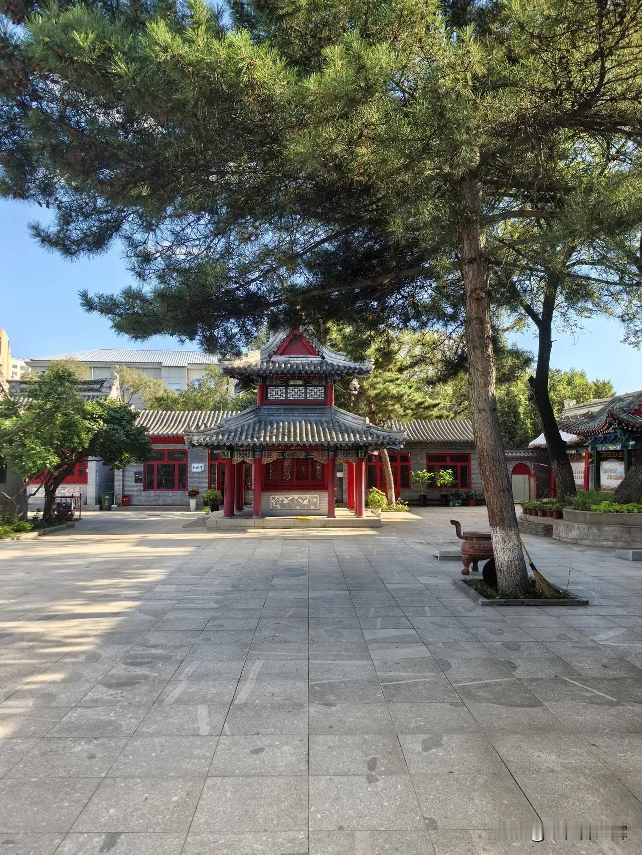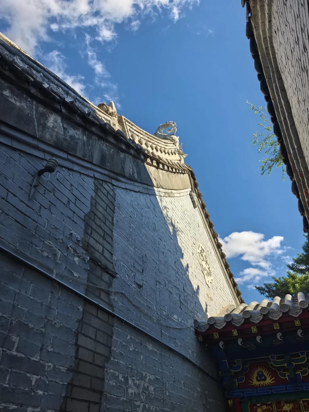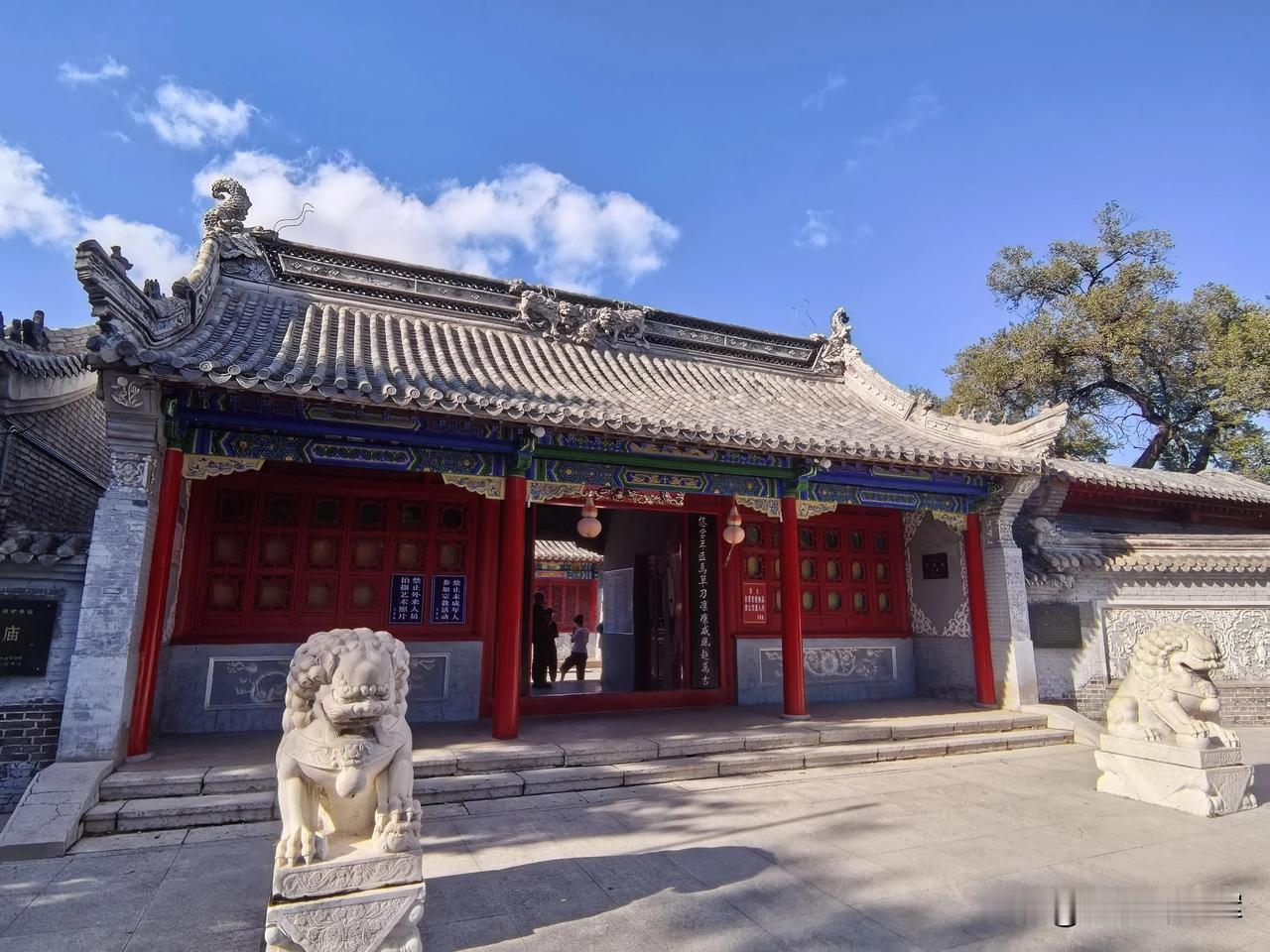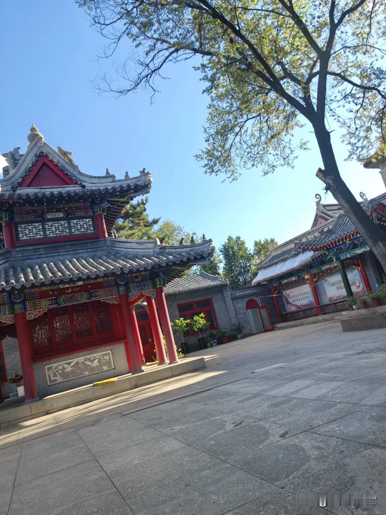 齐齐哈尔龙沙公园内的关帝庙超有韵味。它建于清乾隆四年,占地1200平方米,是市级保护单位。 走进关帝庙,传统砖木结构建筑映入眼帘。正殿高10米,三铺顶,正脊二龙戏珠,山墙石雕精美。殿内关羽像居中高2米,旁有周仓、关平,墙上重彩壁画绘着关公故事。1984年增建的钟鼓楼高8.5米,还有带漏窗的青砖封墙。 这里前殿供王灵官,后殿奉老子。庙四周绿树环绕,紧邻劳动湖。春天时,周边迎春花开、柳绿杨青,与古色古香的建筑相互映衬,美如画卷。