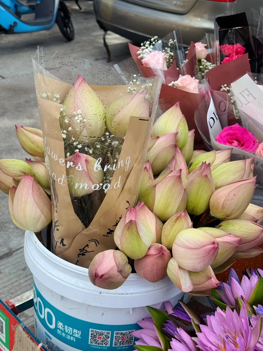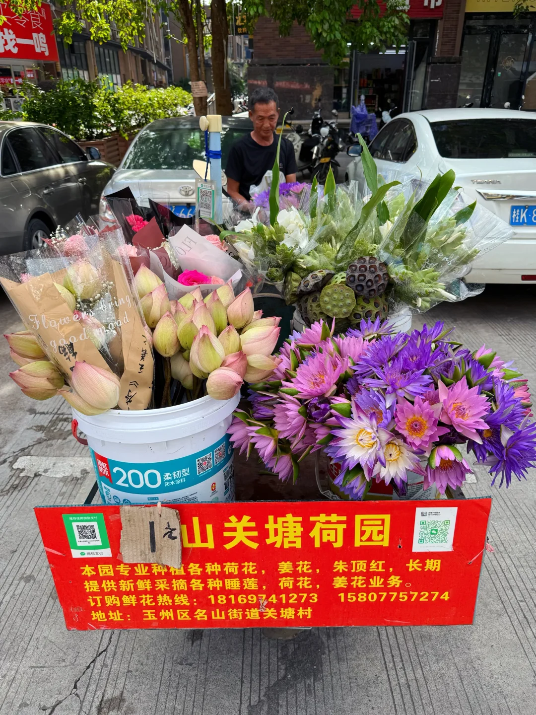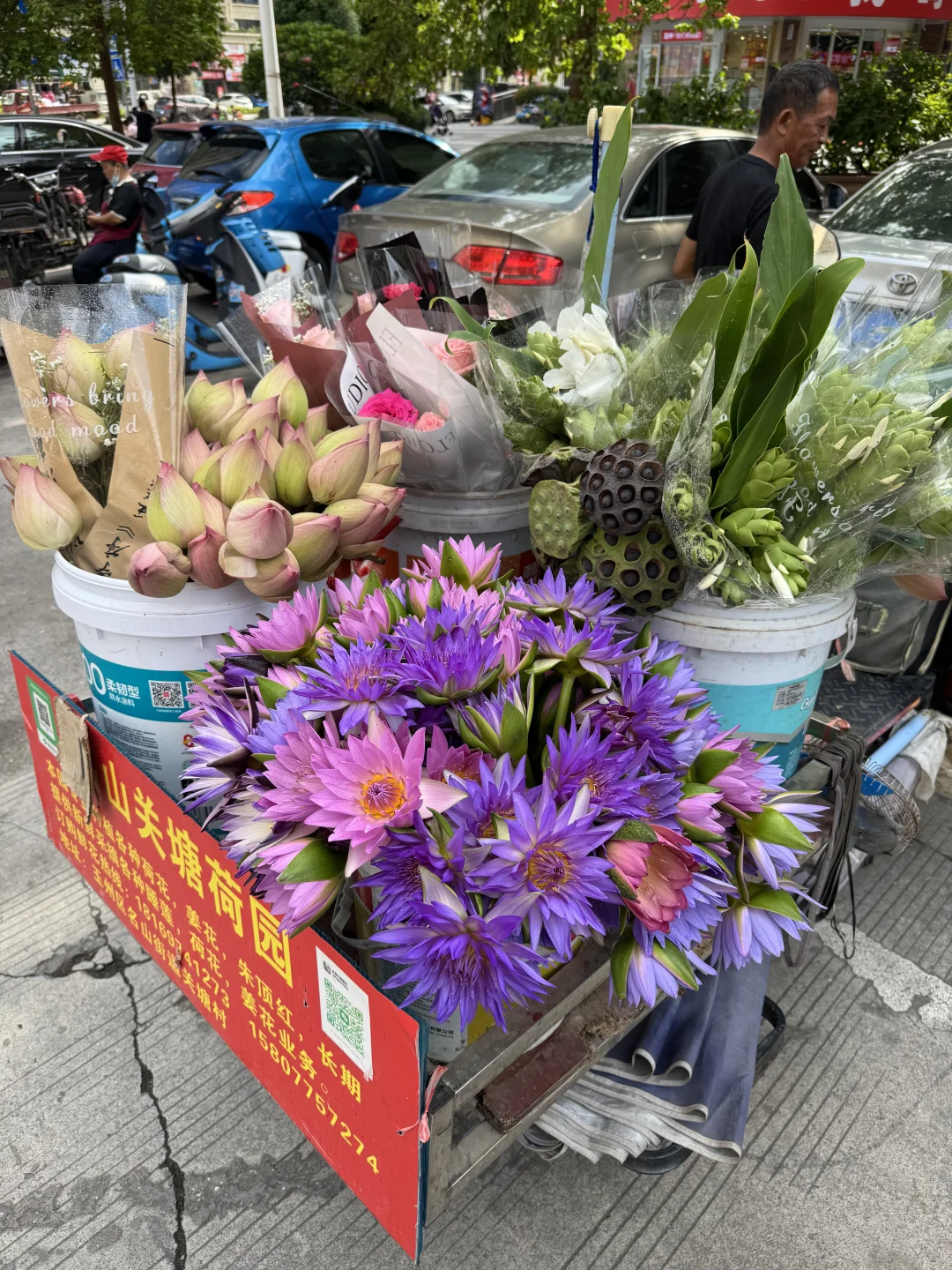 不蔓不枝,亭亭净植🍃 . 🌈玉林也有新鲜的荷花啦! 在万达附近富安居路口偶遇卖荷花的阿叔 每天新鲜现摘出来的✨ 荷花10r3朵,睡莲1r1朵,荷叶不要💰 放在家里太夏天啦!纯分享! .