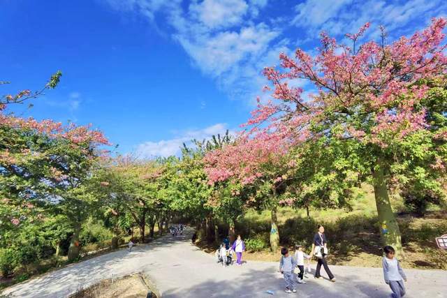 在佛山市三水区卡玛缤纷花世界,一场绚烂的“花事”正盛大上演:挺拔的美丽异木棉缀满粉嫩花朵,如云霞缭绕;典雅的茶花竞相吐艳,争奇斗艳;柔美的紫花风铃摇曳生姿,为这场百花盛会奏响浪漫的乐章。满园关不住的“春色”不仅吸引了无数蜂飞蝶舞,更在11月22日迎来了一群特殊的小客人,共同开启了一场充满诗意与童趣的蝴蝶主题研学之旅。