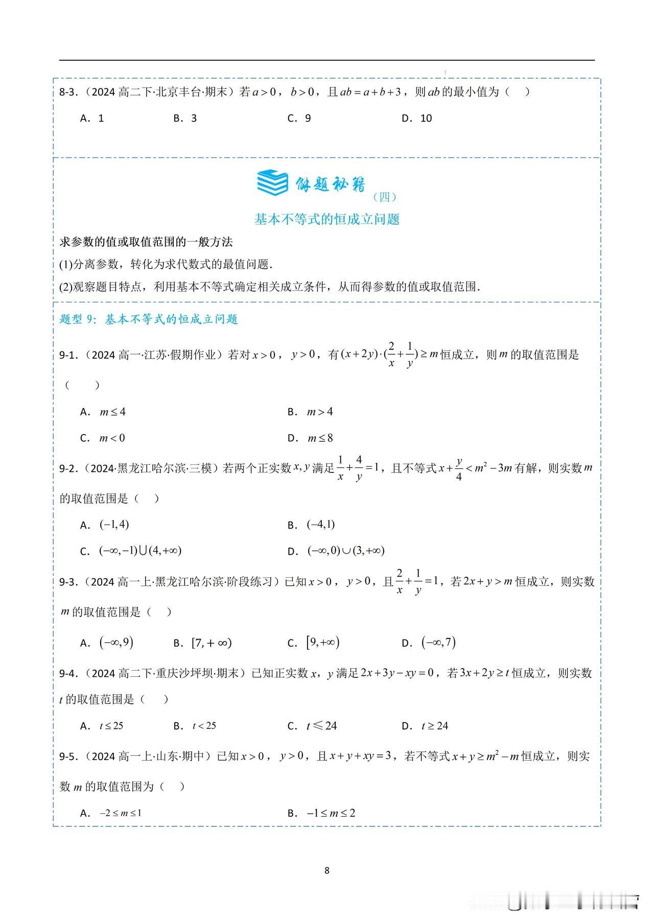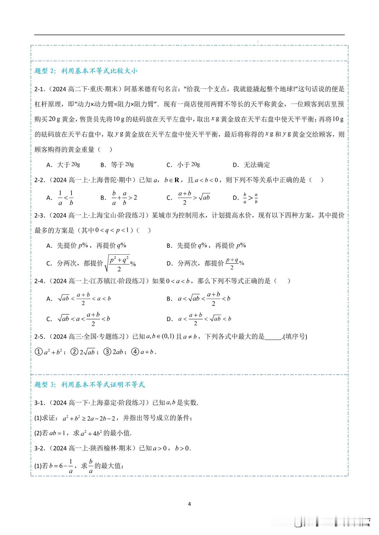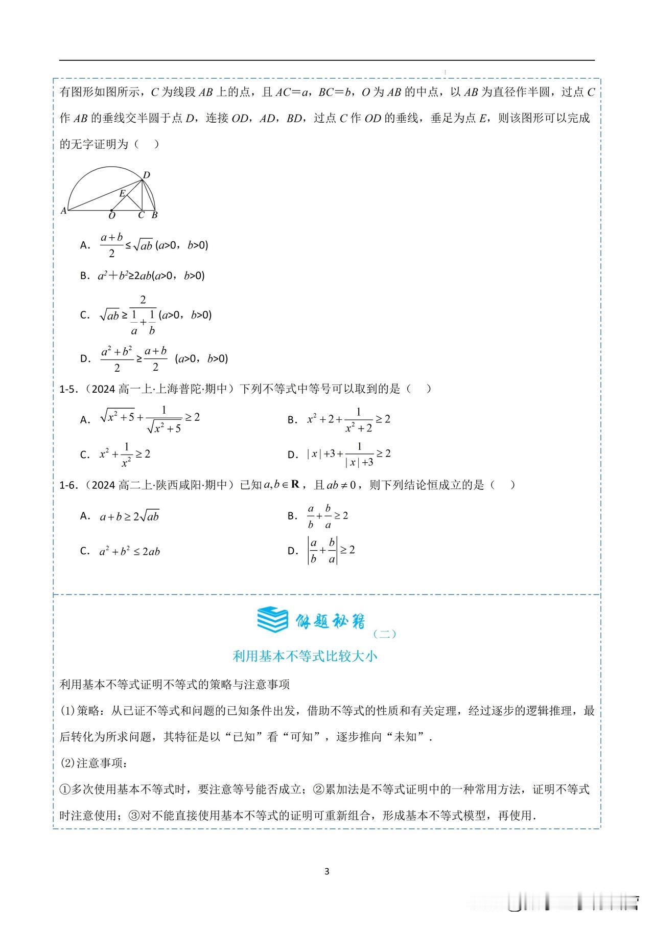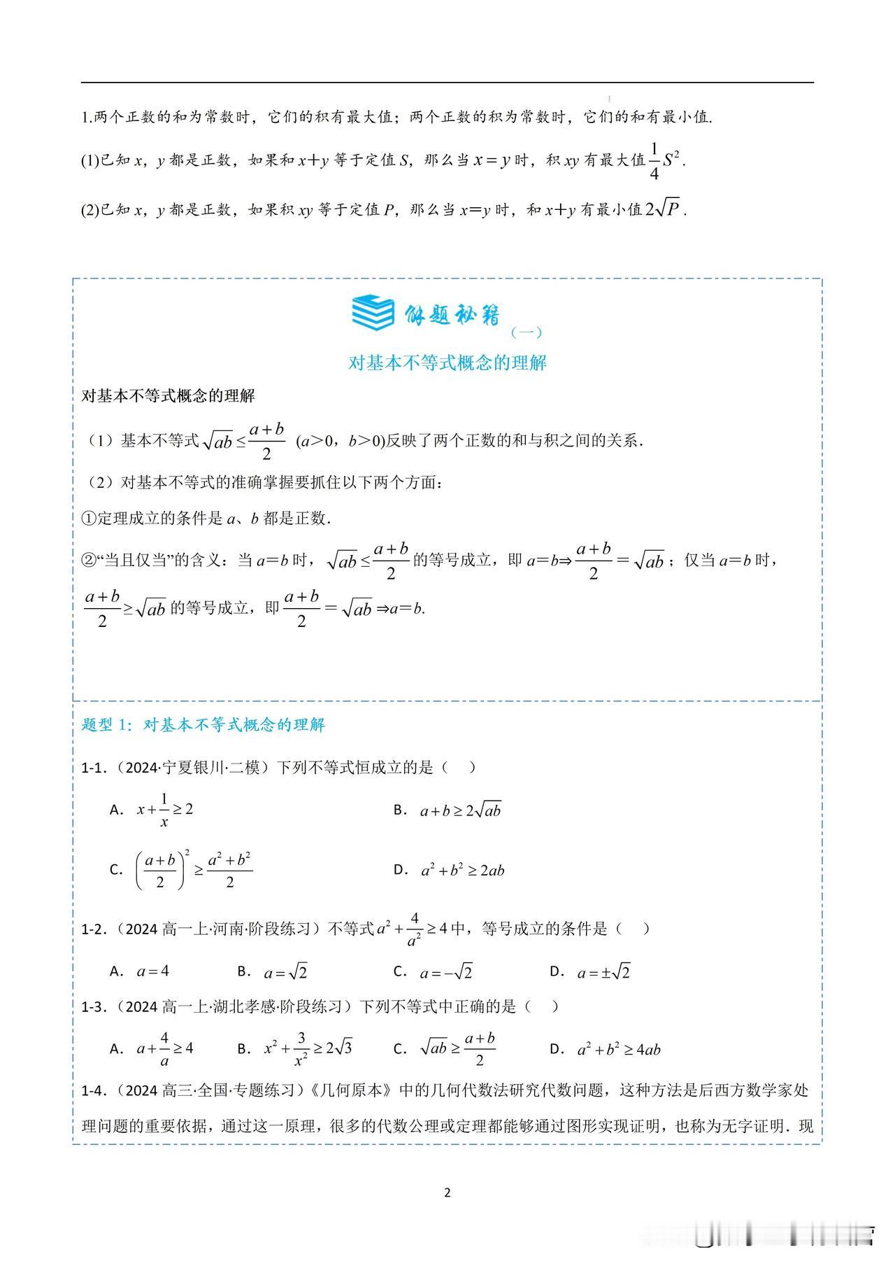基本不等式,高一数学必修第一册的第一个小难点。 有能力的孩子建议可以深挖一点,不