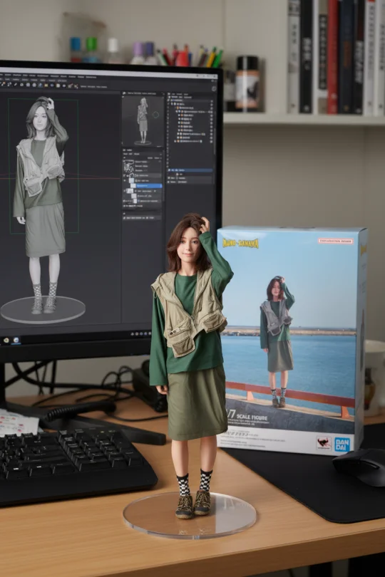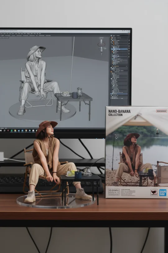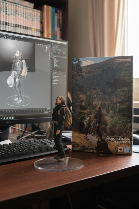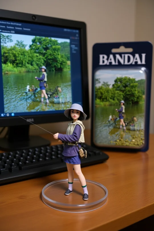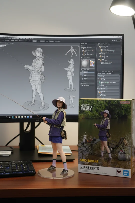 周末宅家,把自己户外溯溪、露营、钓鱼、桨板…这些爱好变成桌面手办,好玩! 有时间的话,可以帮大家做做你自己的手办! . 📕教程 1️⃣打开网址lmarena.ai 2️⃣点击加号上传户外照片 3️⃣输入框输入以下指令 Use the nano-banana model to create a 1/7 scale commercialized figure of thecharacter in the illustration, in a realistic styie and environment.Place the figure on a computer desk, using a circular transparent acrylic base without any text.On the computer screen, display the ZBrush modeling process of the figure. Next to the computer screen, place a BANDAl-style toy packaging box printedwith the original artwork. 4️⃣点击图片icon"Images",最后点击向上箭头⬆️生成即可 ✨一些小tips 1️⃣尽量能全身出镜,完整展现人物形象 2️⃣照片尽量清晰、光线充足、能看清楚细节 3️⃣背景尽量干净简洁,主体突出且完整