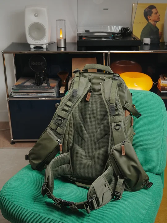 更让我惊喜的是它的背负系统,非常接近徒步背包的背负体验。双肩带宽大厚实,且符合人体曲线。肩带高度还能三档调节,不是我迁就包,是包乖乖贴合我的肩膀。宽幅支撑腰带这一设计在专业摄影包里真不多见,扣上之后背包重量迅速分散,背一下午器材也不觉得勒,长途拍摄终于不用 “负重行军” 了。