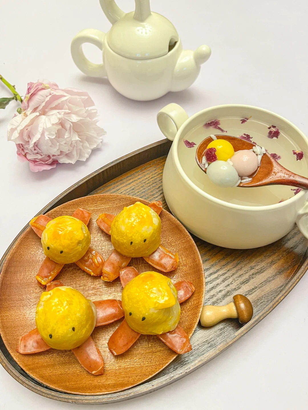 5️⃣刷上蛋黄,用黑芝麻点上眼镜👀,烤箱180°15分钟