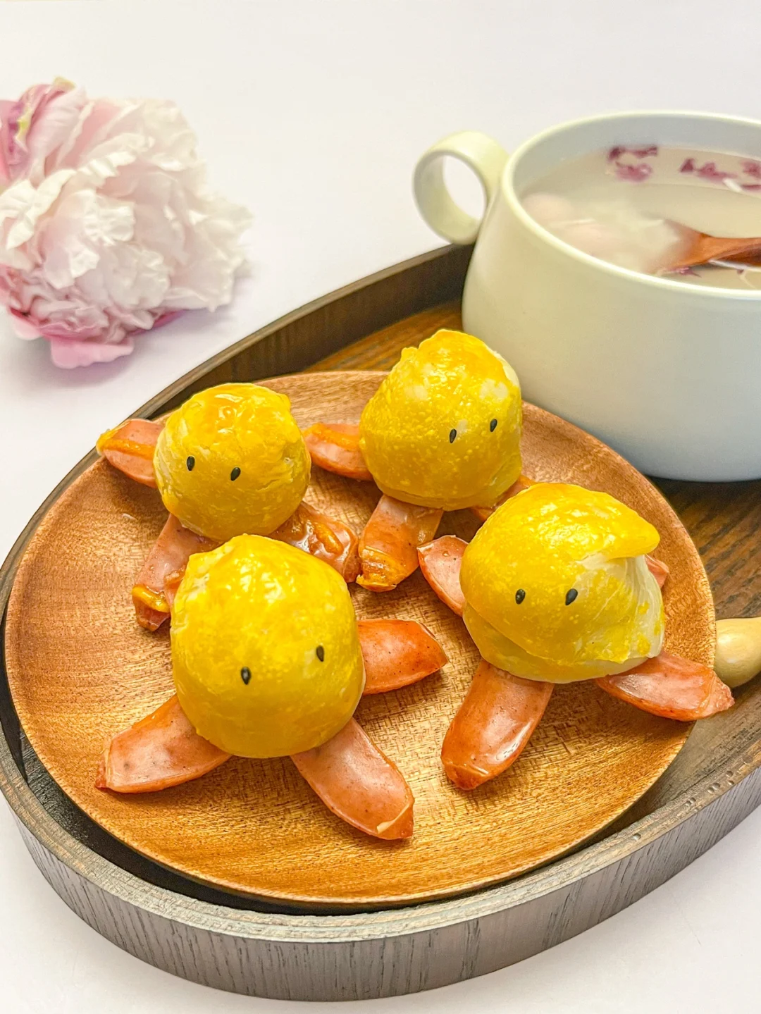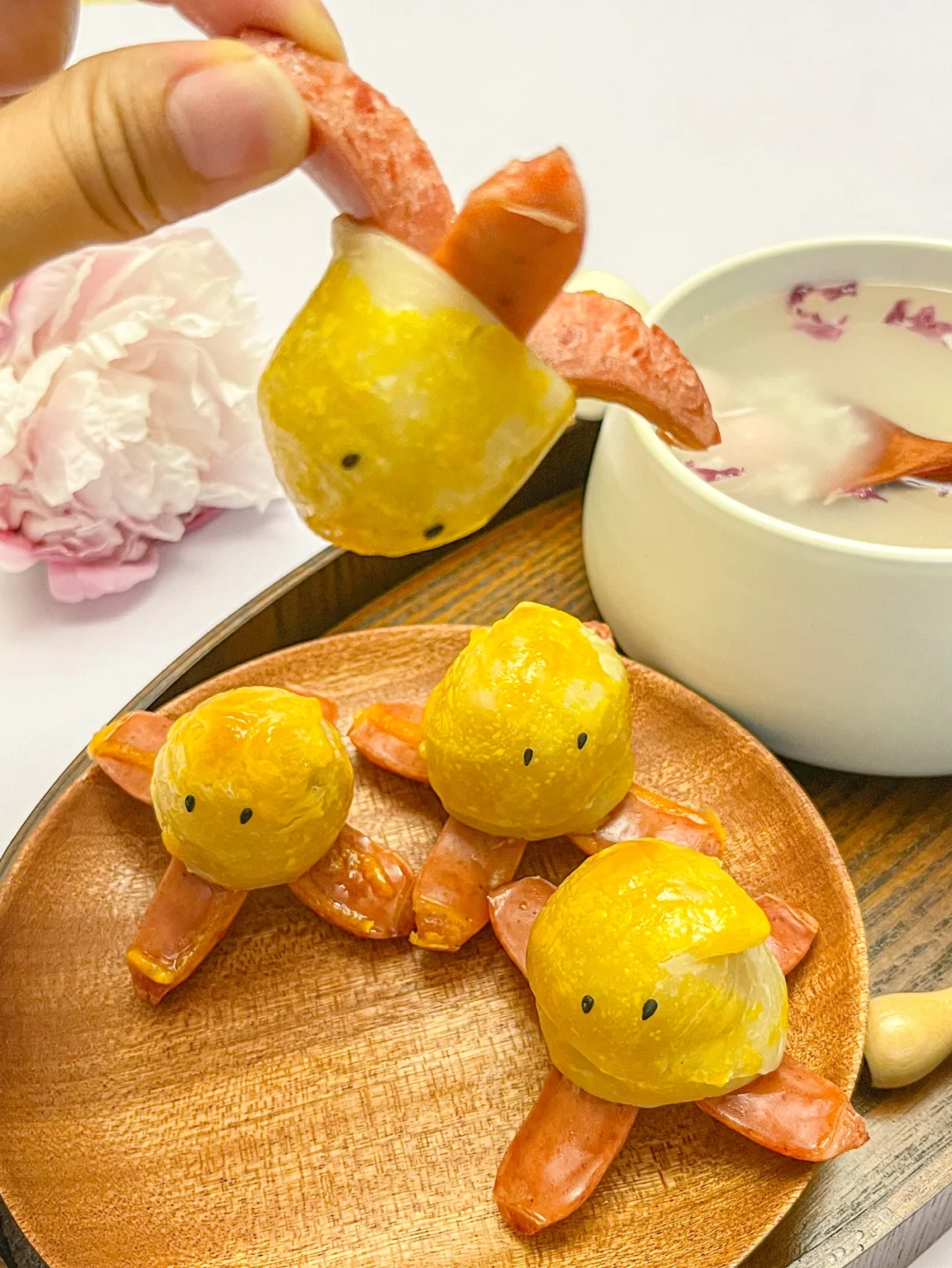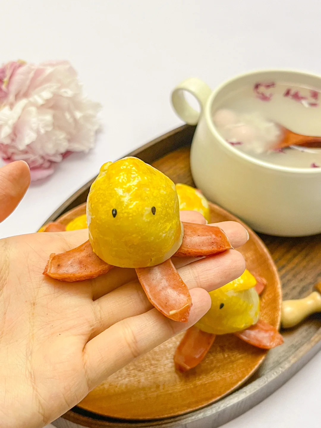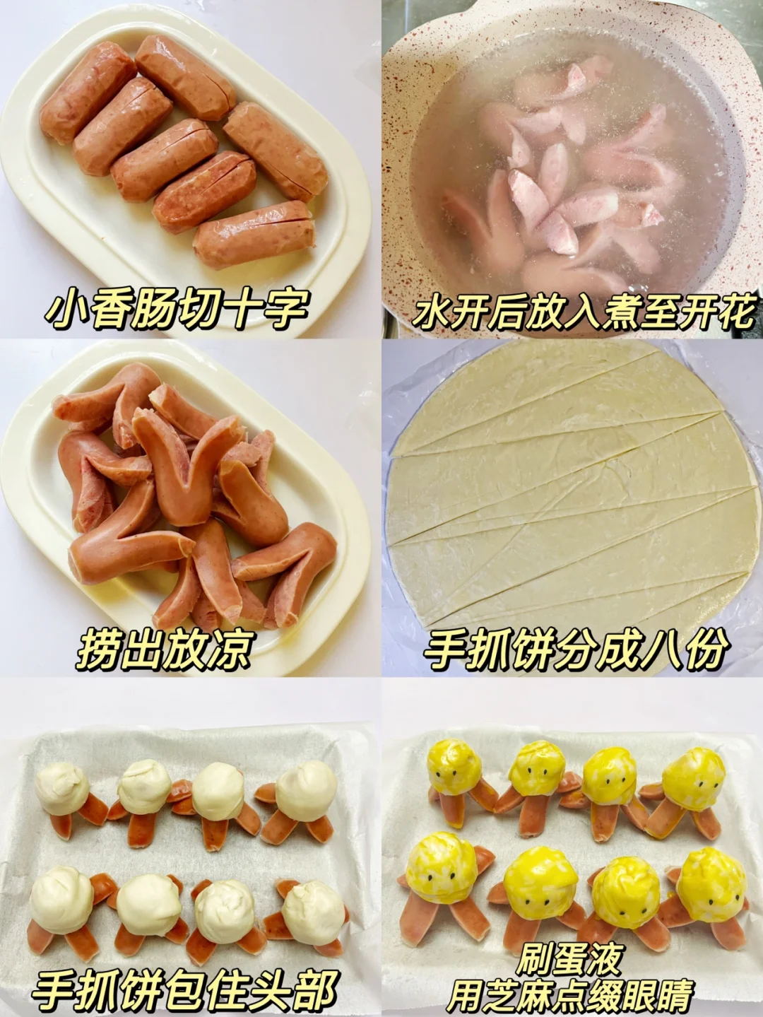 🐙食材:手抓饼一张/小香肠/蛋黄/黑芝麻