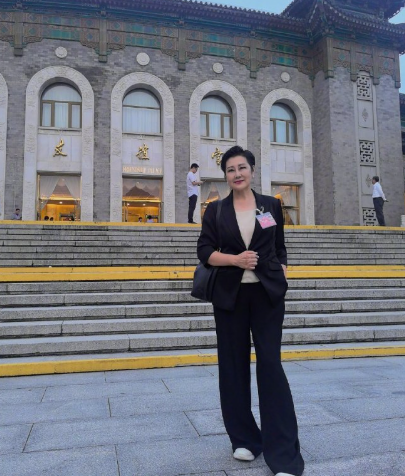 老戏骨凯丽也在北京观看阅兵仪式 穿着是一身黑色西装,看起来很正式,很注重这场仪式!