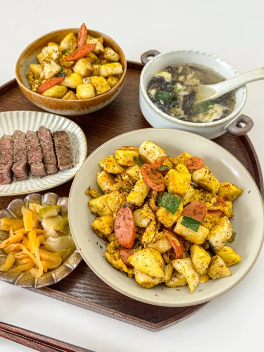 一人食 ▏🔥炒馒头丁➕紫菜蛋花汤