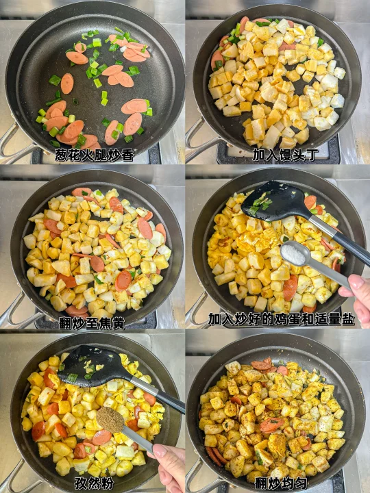 5分钟剩馒头逆天改命!香到报警 剩馒头千万别扔!试试这个神仙吃法,金黄酥脆孜然香,一口秒杀烧烤摊~ 🍞 黄金炒馒头丁 1️⃣ 馒头切丁裹满蛋液(两个蛋打散) 2️⃣ 小火慢煎至六面焦黄盛出 3️⃣ 葱花火腿爆香,倒回馒头丁 4️⃣ 加炒熟的鸡蛋+盐+孜然粉翻炒 ✨酥脆裹着蛋香,孜然味太上头! 🍲 紫菜蛋花汤(3分钟快手版) 1️⃣ 水沸后淋入蛋液成蛋花 2️⃣ 加紫菜+虾皮➕盐+白胡椒+香油 3️⃣ 撒葱花关火,鲜掉眉毛! 💡 绝配套餐 搭一份黑椒牛排,荤素汤俱全 馒头丁当主食,香脆饱腹超满足
