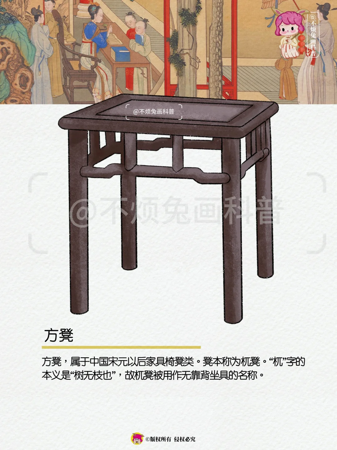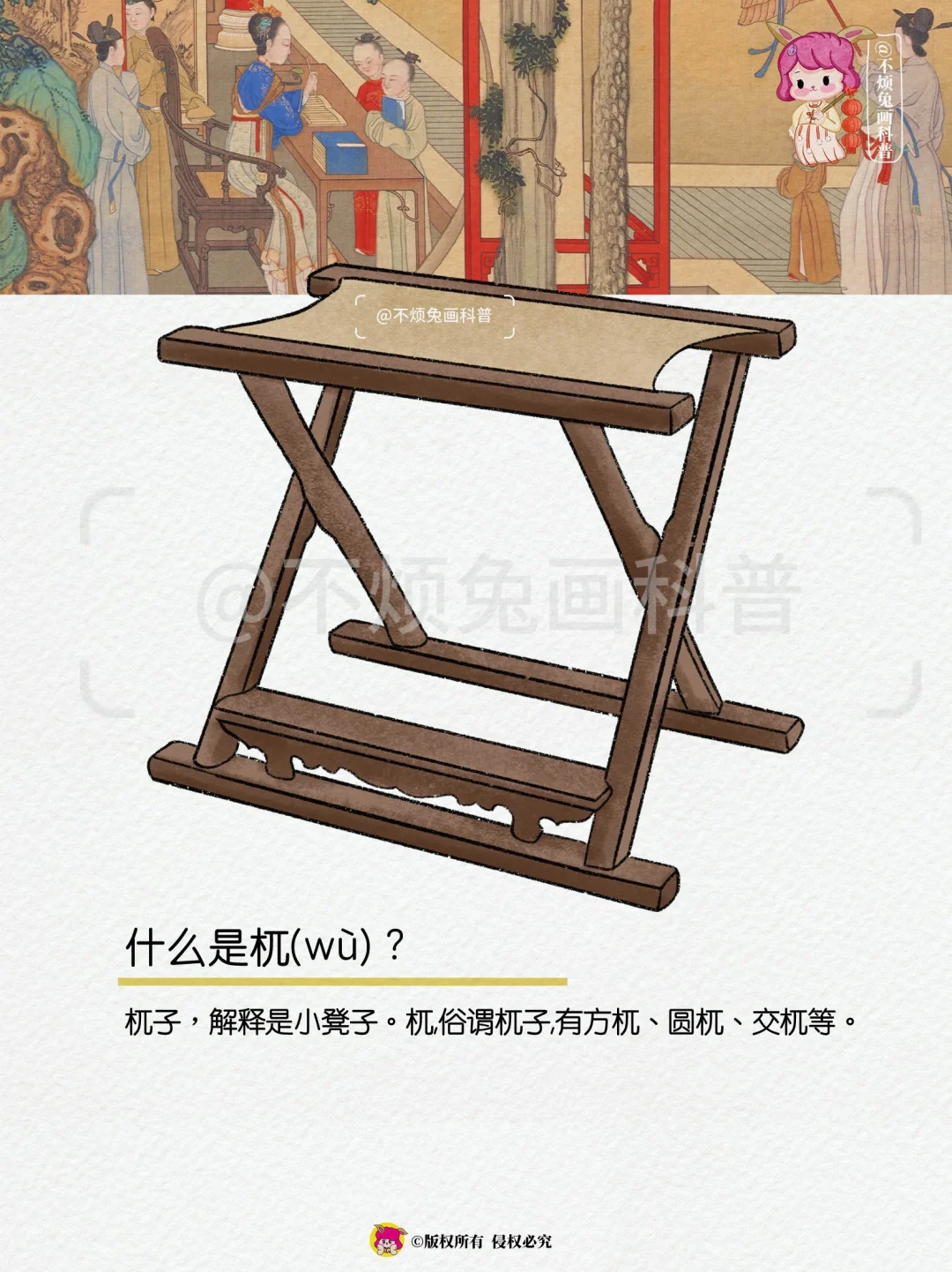 杌子,解释是小凳子。杌,俗谓杌子,有方杌、圆杌、交杌等。