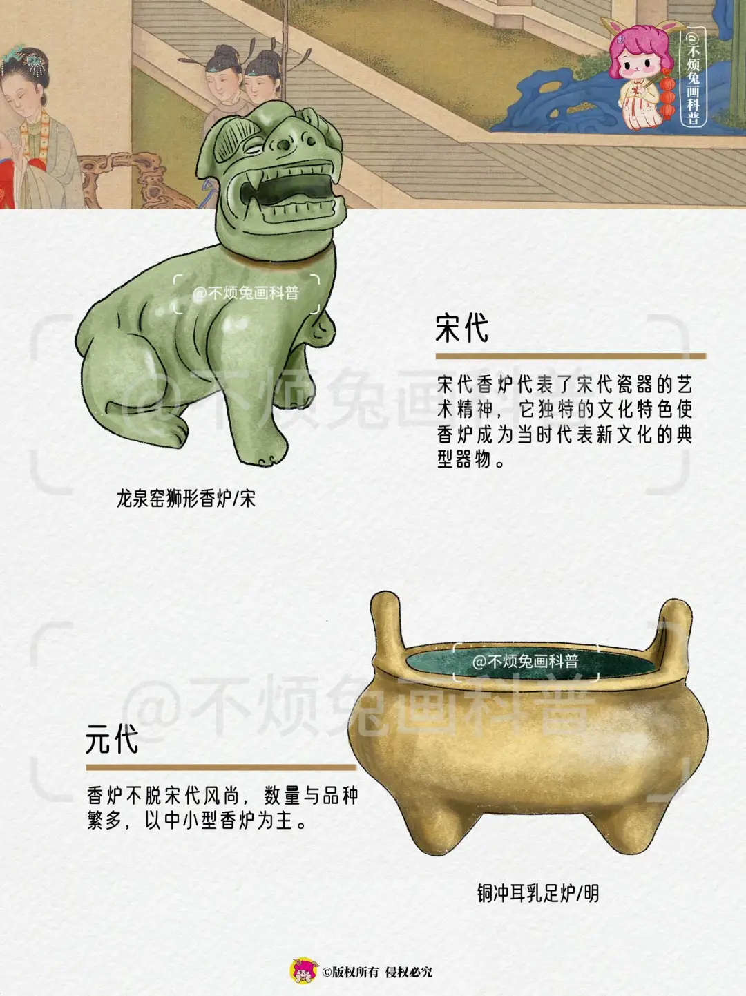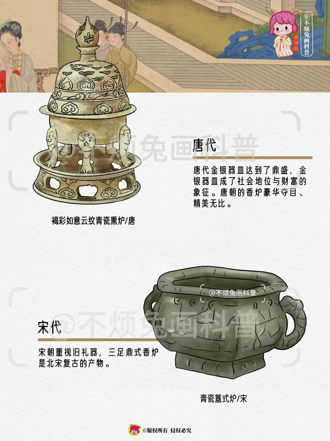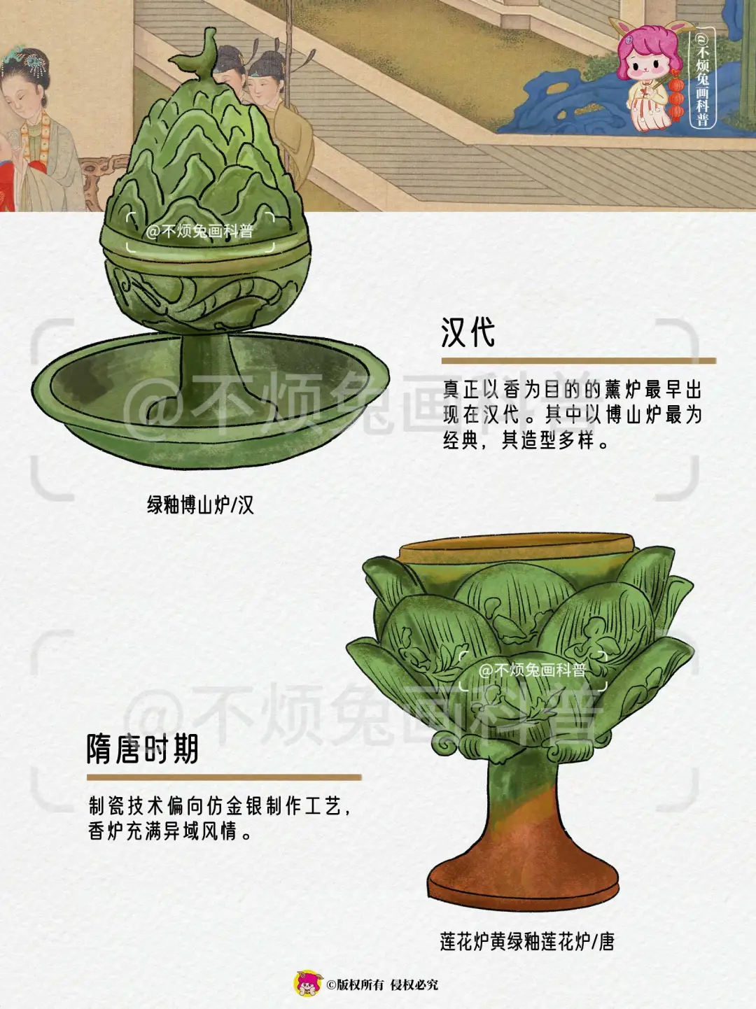 🔸历代香炉的发展和演变非常丰富,跟着不烦兔来看看关键时期和特点吧~
