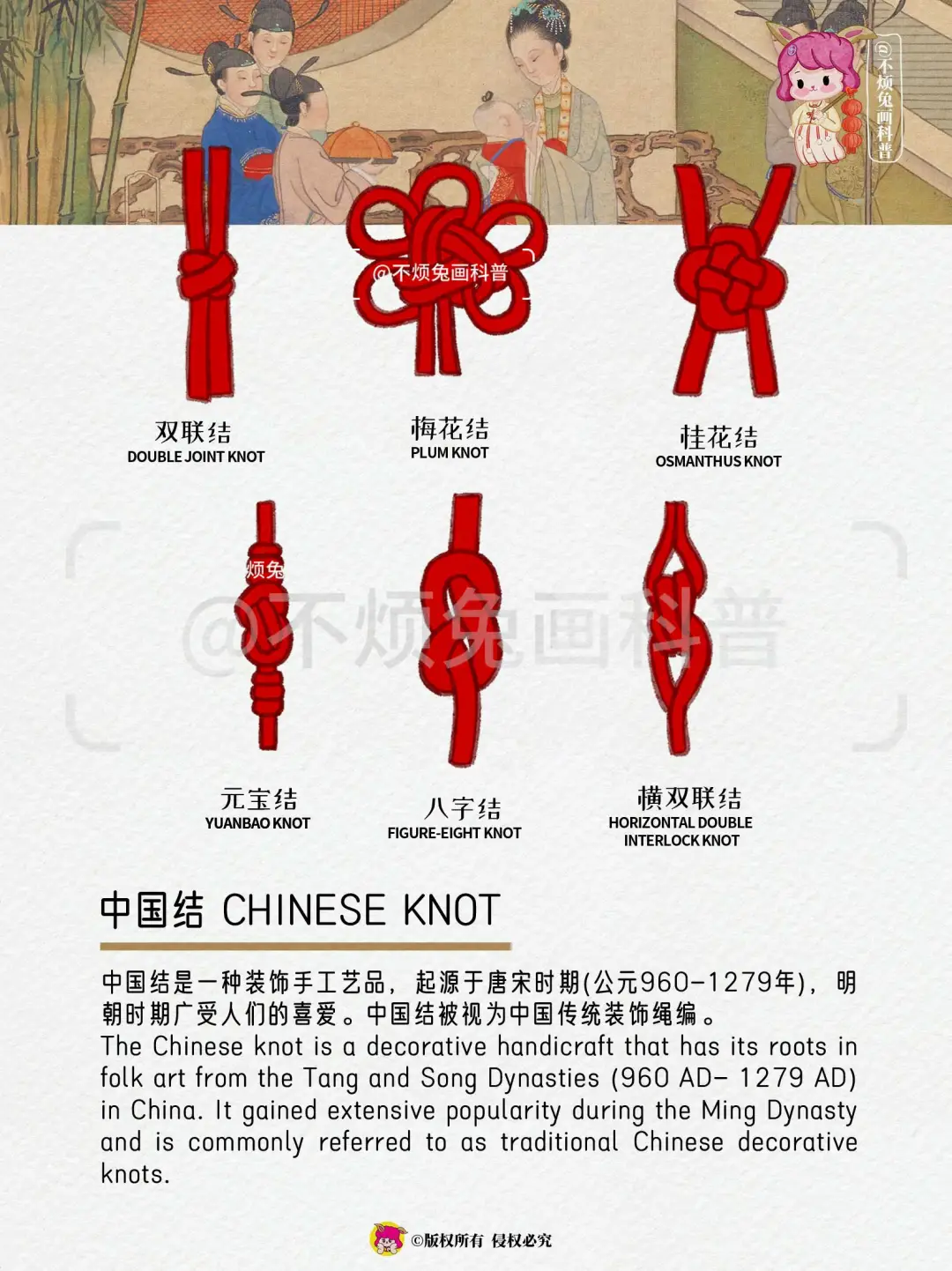中国结是一种装饰手工艺品,起源于唐宋时期(公元960-1279年),明朝时期广受人们的喜爱。中国结被视为中国传统装饰绳编。