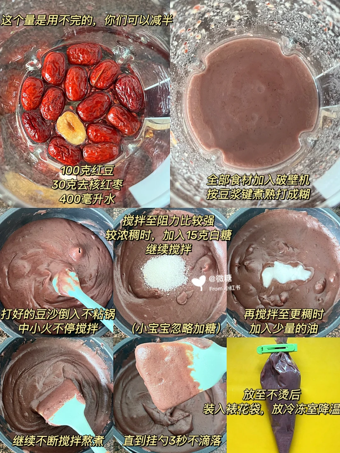 1️⃣红豆➕去核红枣➕清水加入破壁机,按豆浆键煮熟打成糊糊