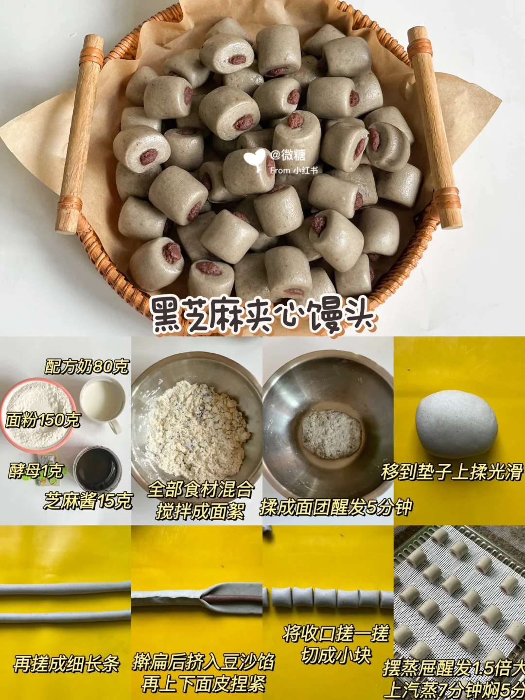 面粉150克,黑芝麻酱15克,牛奶80克,酵母1.5克