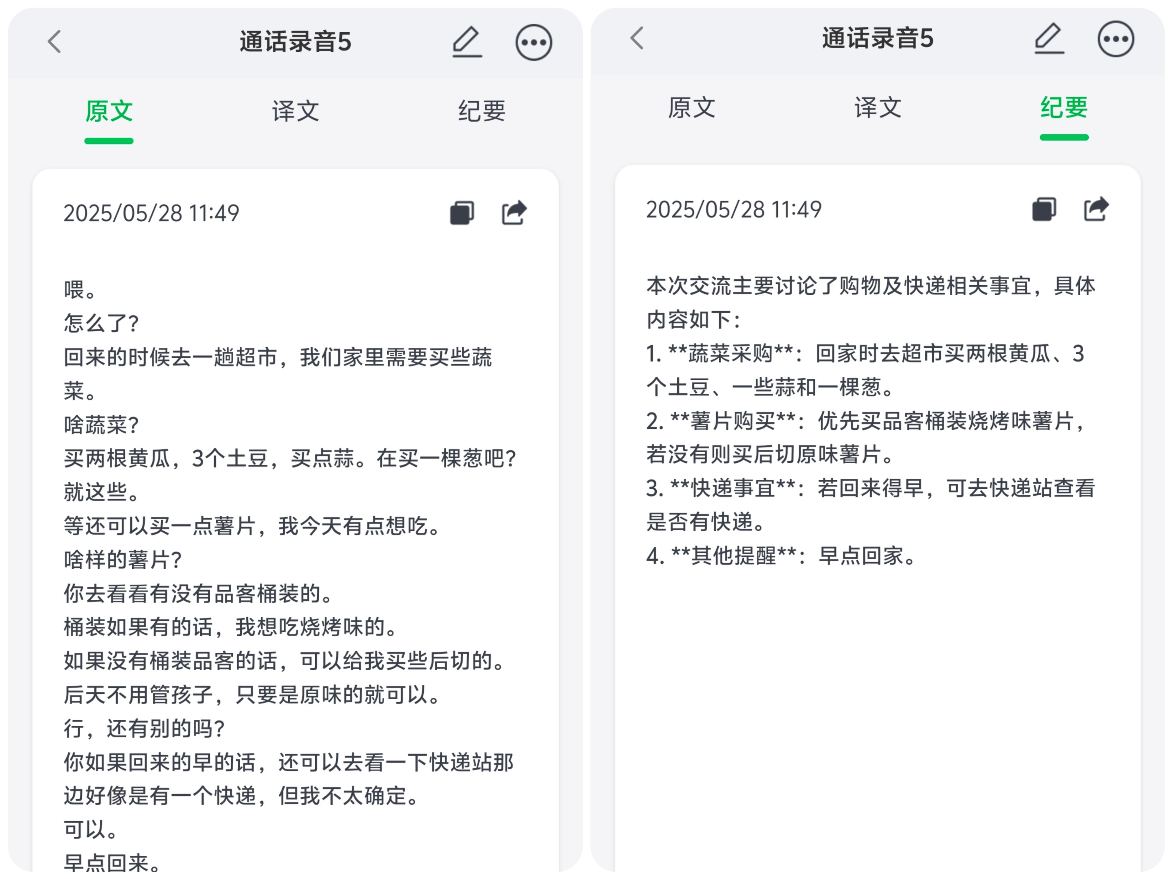 随手点开通话录音,不用太走心地先应付过去,等到取得游戏胜利后,再通过AI总结下对方的诉求,一条不拉地完美执行,游戏对象两不误~