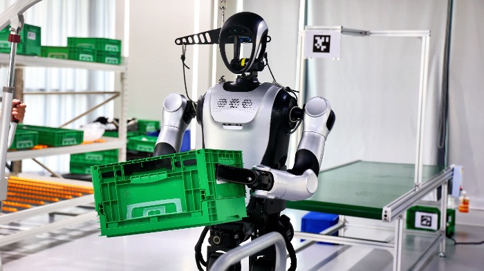 如今,在合肥乐聚机器人技术有限公司里,工作人员不断模拟“夸父”在汽车总装车间完成空箱回库,增加其多模态感知、复杂任务处理及泛化能力,使其适应工业智造、商业服务、科研教育等各行业场景应用。同时,“夸父”也不时走上街头和赛场,展现人形机器人的魅力。