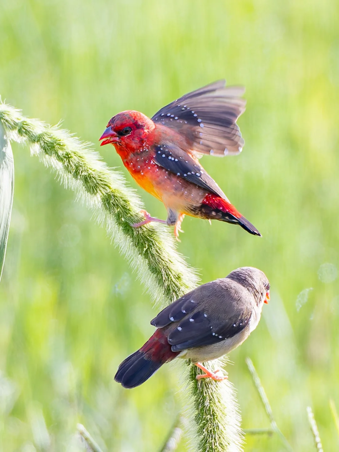尝尝这颗草莓🍓红梅花雀