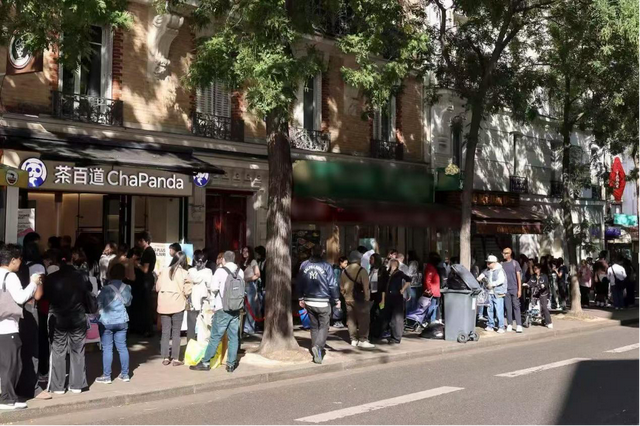 近日,新式茶饮头部品牌茶百道法国首家门店在巴黎13区开业,并推出了打卡抽奖活动,赠送巴黎限定冰箱贴和熊猫玩偶等周边,吸引了大量当地消费者排队购买。