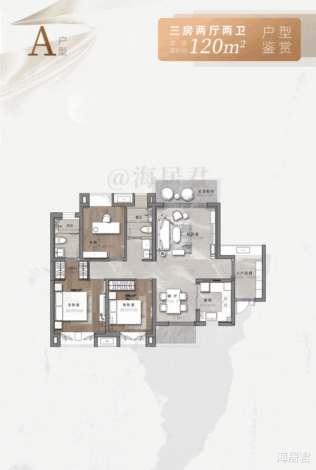 建面约120㎡的三房A、B户型,则是改善型教育家庭的首选,两个户型各有亮点,适配不同生活需求。