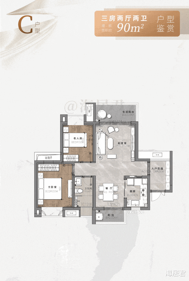 建面约90㎡的两房C户型,不管是三口之家自住,还是看重学区价值的投资客,都是闭眼冲的优选!