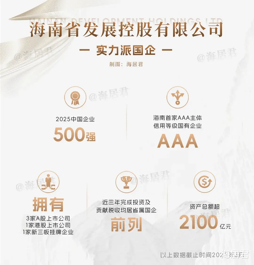 更硬核的是企业实力。开发商海南控股是海南首家AAA主体信用等级国企,总资产超2100亿元,手握3家A股上市公司、1家港股上市公司及1家新三板挂牌企业,更是强势入选“2025中国企业500强”榜单!