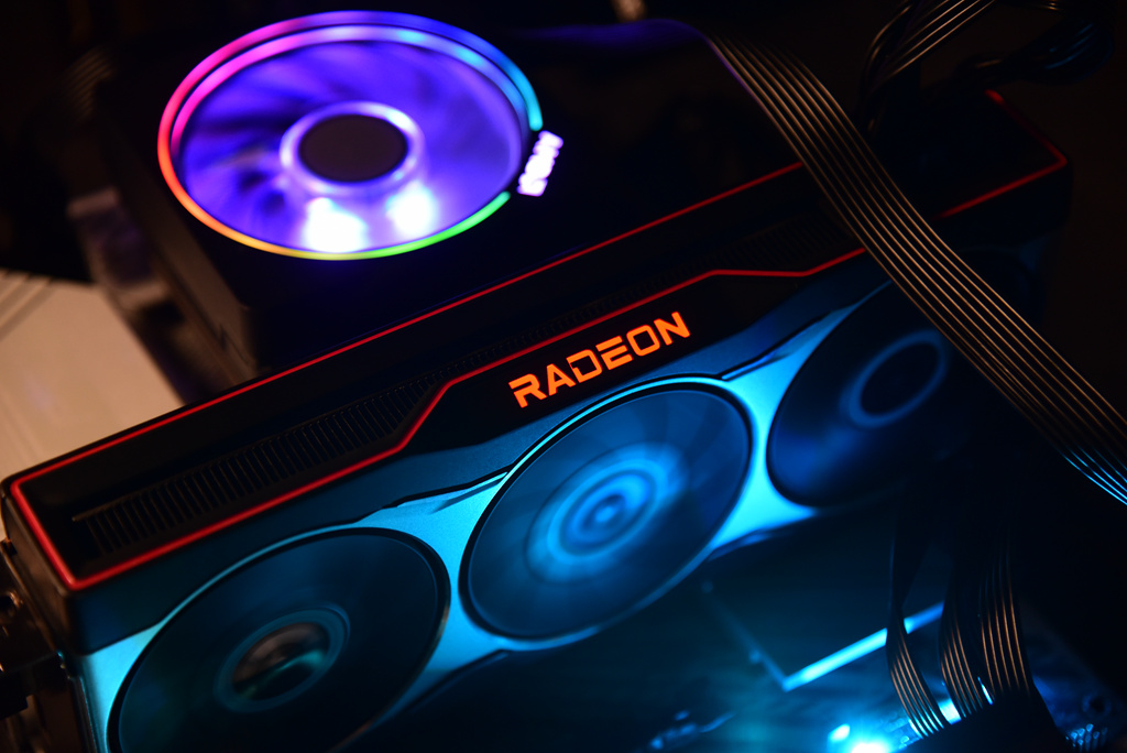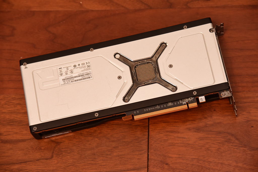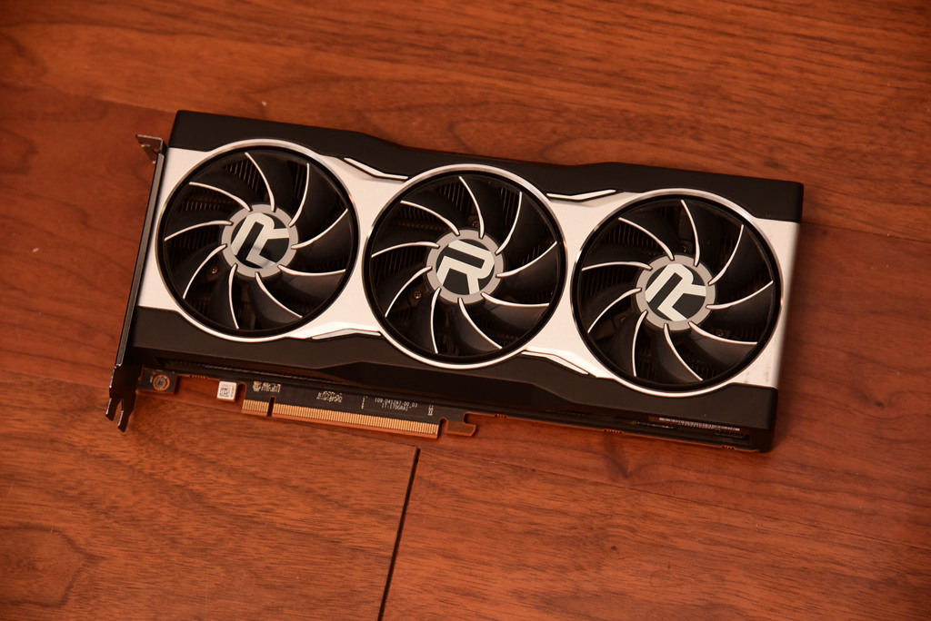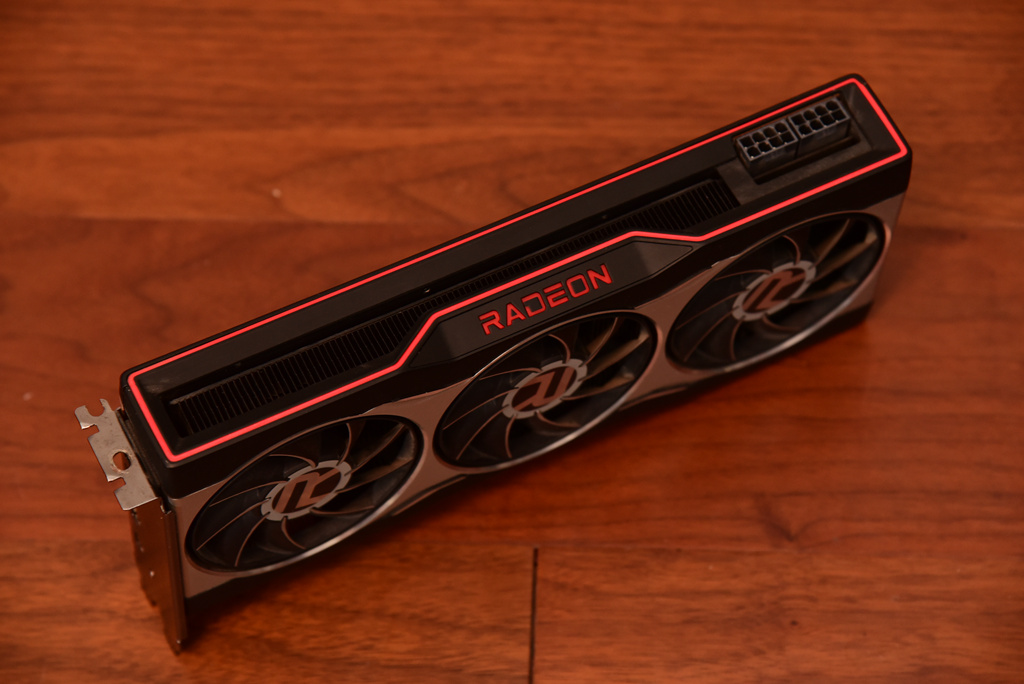 散热器方面,公版RX6800采用了三风扇直触一体式解热器,风扇直径为8厘米,支持智能停转技术。显卡供电接口为2个8PIN接口,显卡配备有金属背板,避免了长时间使用后PCB变形。