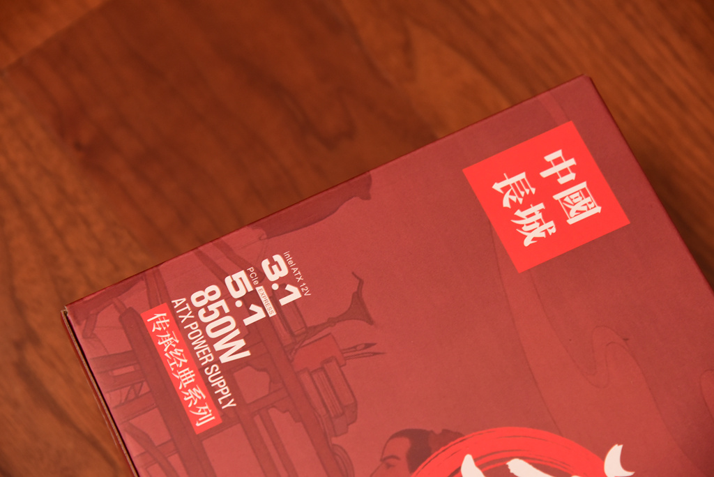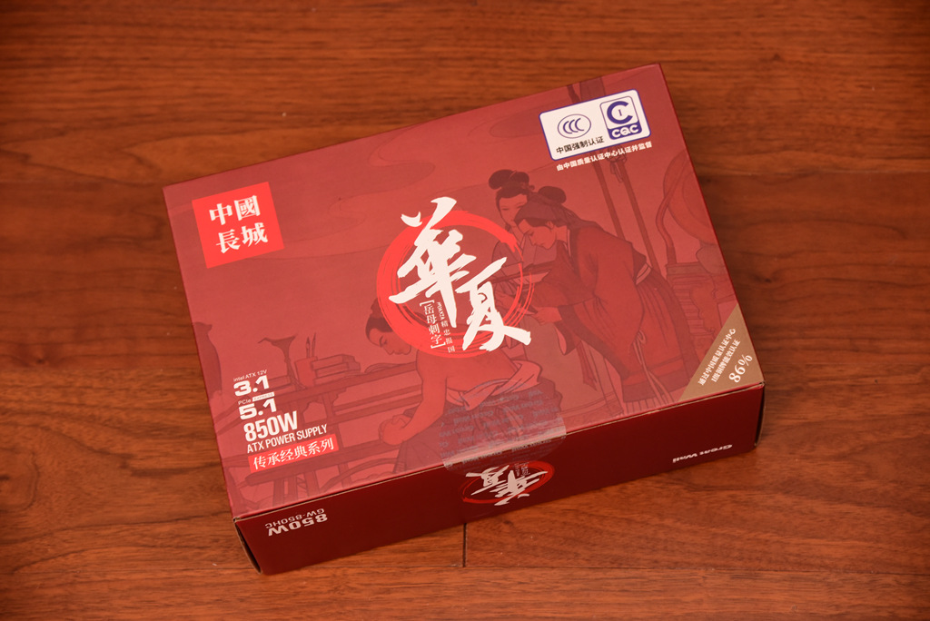这款电源的包装底色以大红色的中国风为主,采用行书书写的“华夏”二字作为系列标识,产品序列隶属于“宋”。包装背景图案是著名爱国典故“岳母刺字”的画面,也代表着长城一心打造国货精品,“精忠报国”的企业精神。
