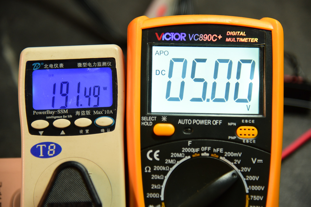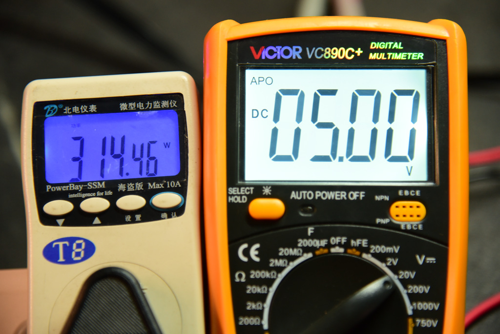 开机5分钟后,不进行任何操作,测试待机状态下整机功率,同时测试3.3V、5V、12V输出。