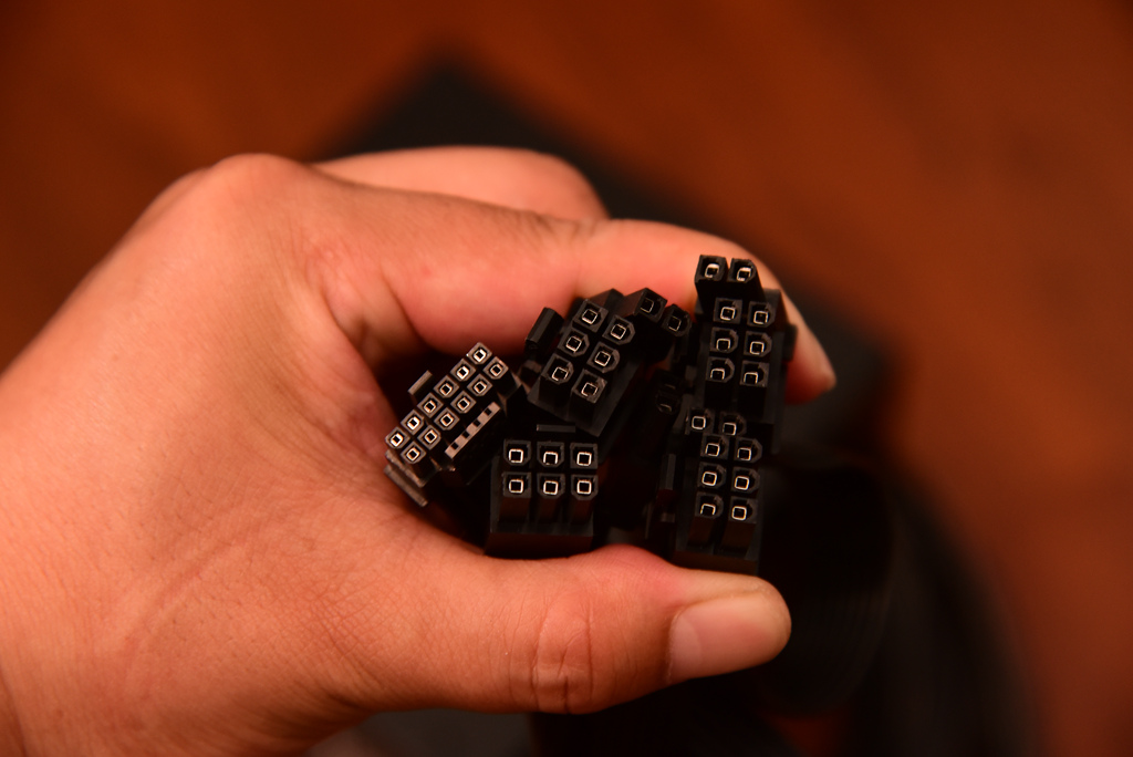显卡供电接口为PCIE5.0专属的12+4Pin HPWR插座,另外还有4条原生PCIE输出12V供电接口。