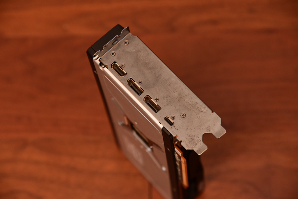 显卡的输出接口为1个TYPE-C规格的视频接口,1个HDMI 2.1,2个DP 1.4,比较全面。