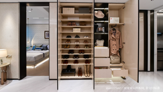建发海宸深入推敲生活场景,通过精准空间设计与全屋收纳系统,实现“每一平米都为生活服务”,秉持“空间平权”理念,均衡考量儿童、老人与共享区域的空间舒适性。