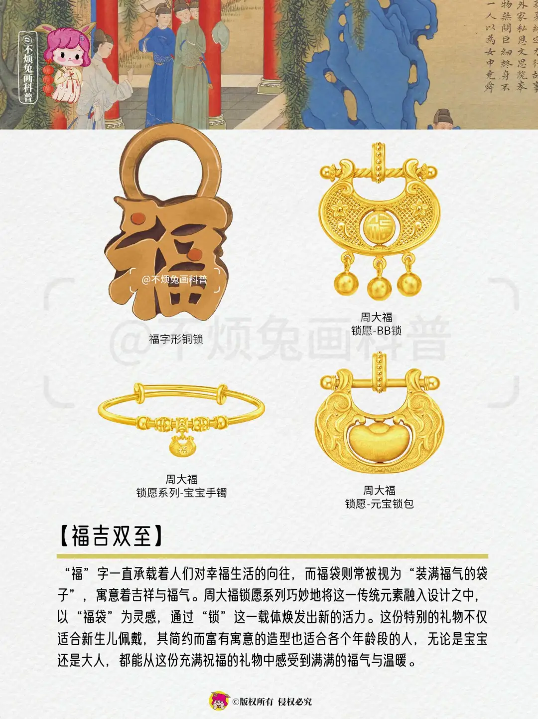 不烦兔  不烦兔画科普  不烦兔家族 让世界看到中国之美 买金就买周大福 周大福七夕 七夕心有锁愿 爱是动词 七夕礼物 周大福锁愿