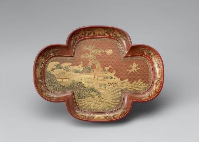 清乾隆款朱漆戗金填彩海棠仙盘旧金山亚洲艺术博物馆藏