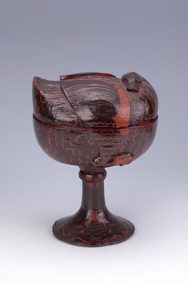 战国彩绘浮雕鸳鸯漆盖豆荆州博物馆藏