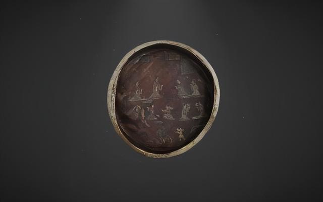 西汉彩绘云气鸟兽人物纹漆面罩扬州博物馆藏