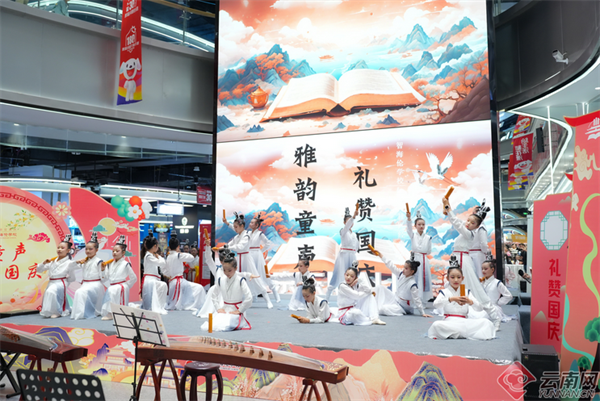 9月27日,为迎接国庆与中秋双节,昆明市官渡区小板桥街道海祥社区联合萃智海伦学校、世纪之音艺术培训学校等公共单位在京东MALL举办“雅韵童声,礼赞国庆”经典诵读活动。活动通过吟诵、舞蹈、舞台剧等多元形式,让社区居民沉浸式体验经典文化魅力,推动传统文化从学校走向社区。