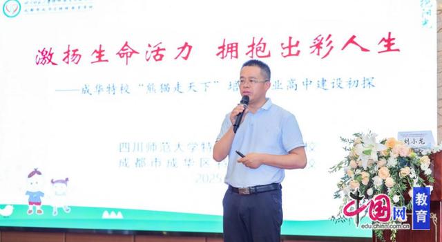 同时,成都市龙泉驿区特殊教育学校校长付勇介绍了职高发展的两大创新实践;成都市成华区特殊教育学校副校长覃佳利结合课程本位工具研制+智能支持平台建设,介绍了成华特校双轮驱动培智课标落地的十年创新实践;成都市锦官城小学校长刘小龙基于国家、社会和家长的多方层面,阐述了培智职高建设的逻辑起点和路径,并重点介绍了“熊猫走天下”课程体系。