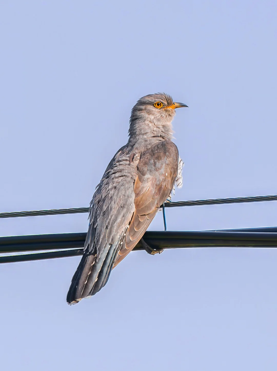 原创拍摄于2025.07 大杜鹃,Common Cuckoo,鹃形目杜鹃科杜鹃属。最典型的一种杜鹃,在我国大部都能见到(听到)的布谷鸟。 每年夏季在全国各地大部分地方都能听到这种传说中的布谷鸟,要见到就要看运气啦。 哦对了,它们都营巢寄生。