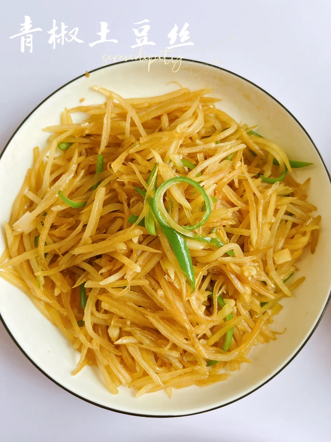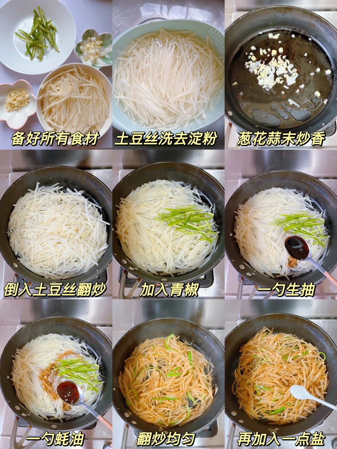 1️⃣土豆去皮擦丝,用水清洗干净淀粉