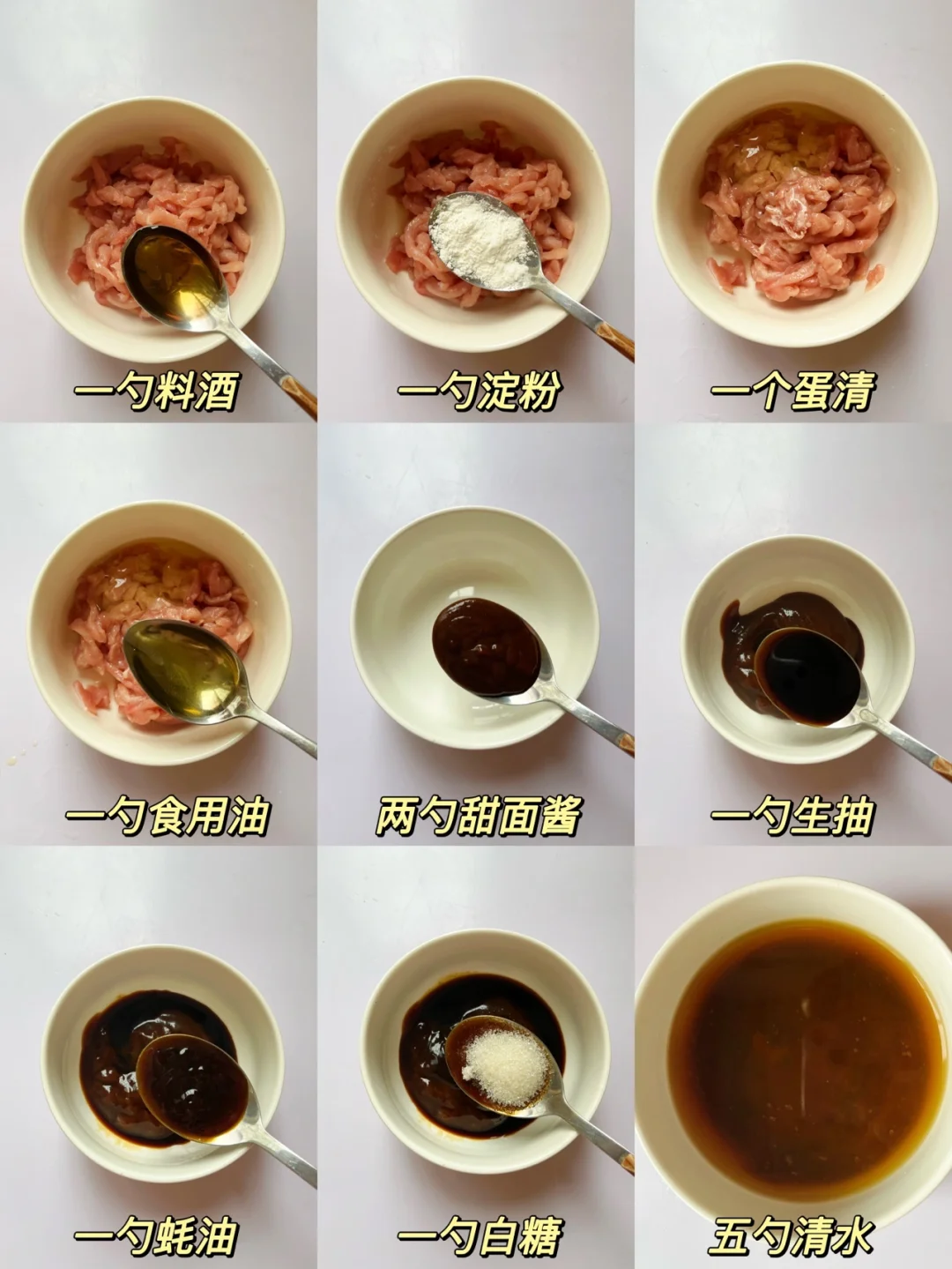2️⃣酱料:两勺甜面酱➕一勺生抽➕一勺蚝油➕一勺白糖➕五勺清水